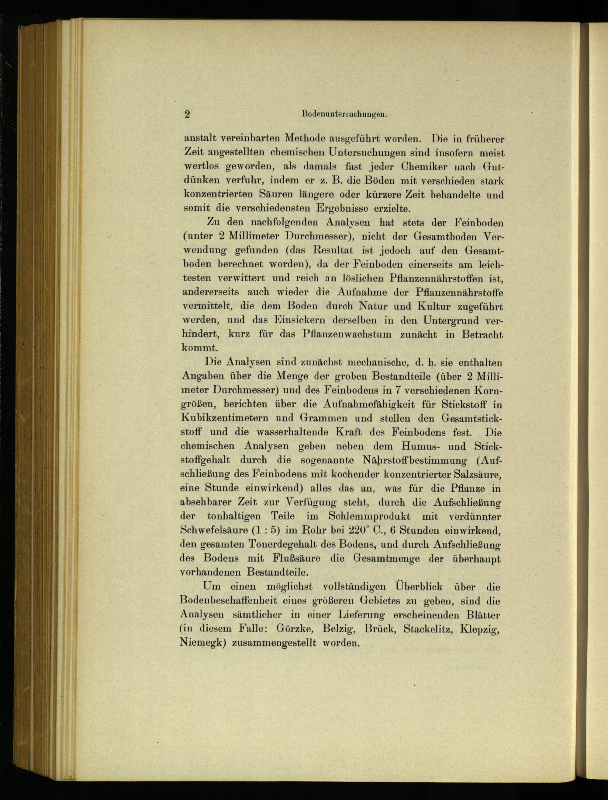 Um einen möglichst vollständigen Überblick über die Bodenbeschaffenheit eines größeren Gebietes zu geben, sind die Analysen sämtlicher in einer Lieferung erscheinenden Blätter (in diesem Falle: Görzke , Belzig , Brück, Stackelitz , Klepzig, Niemegk ) zusammengestellt worden,