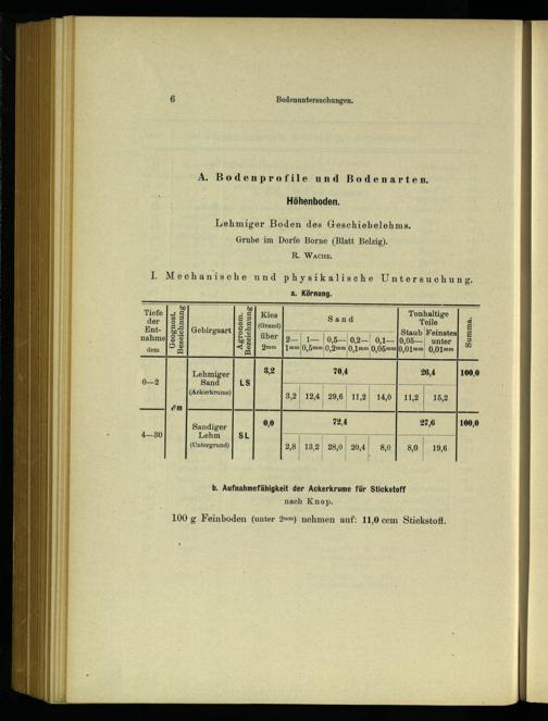 b. Aufnahmefähigkeit der Ackerkrume für Stickstoff nach Knop.