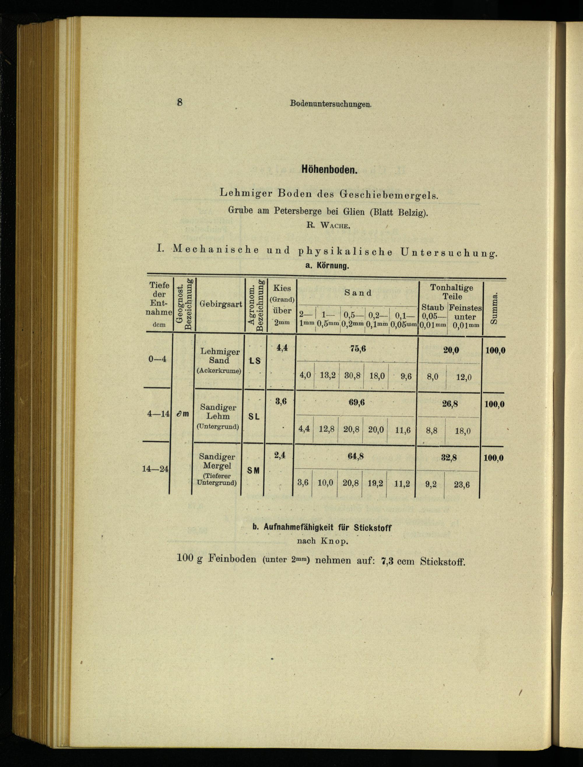 I. Mechanische und physikalische Untersuchung. a. Körnung.