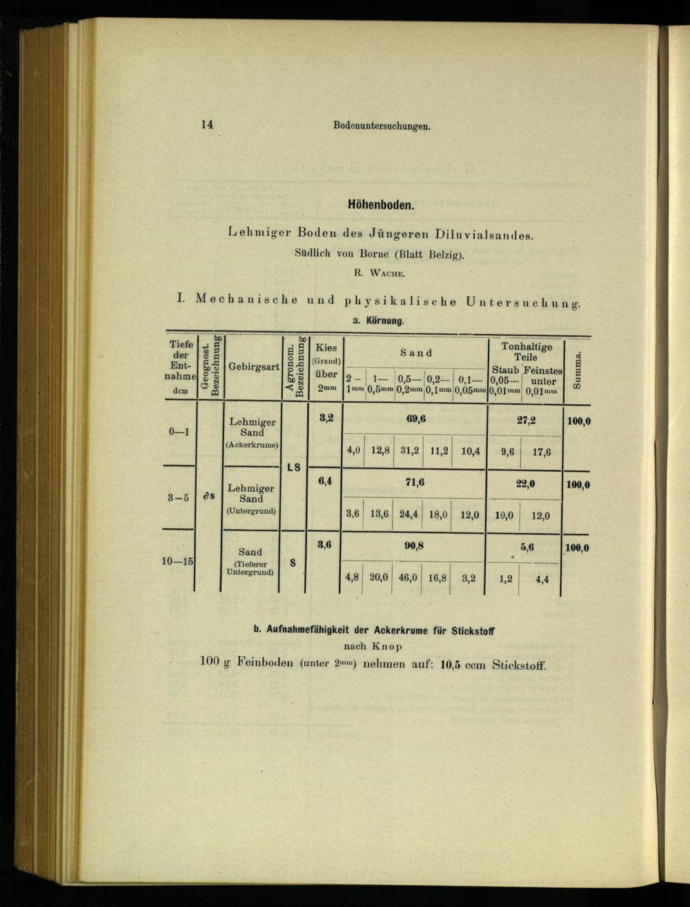 b. Aufnahmefähigkeit der Ackerkrume für Stickstoff nach Knop