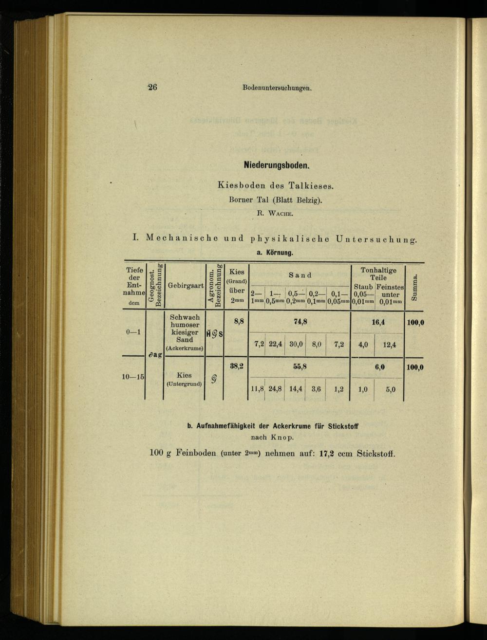 b. Aufnahmefähigkeit der Ackerkrume für Stickstoff nach Knop.