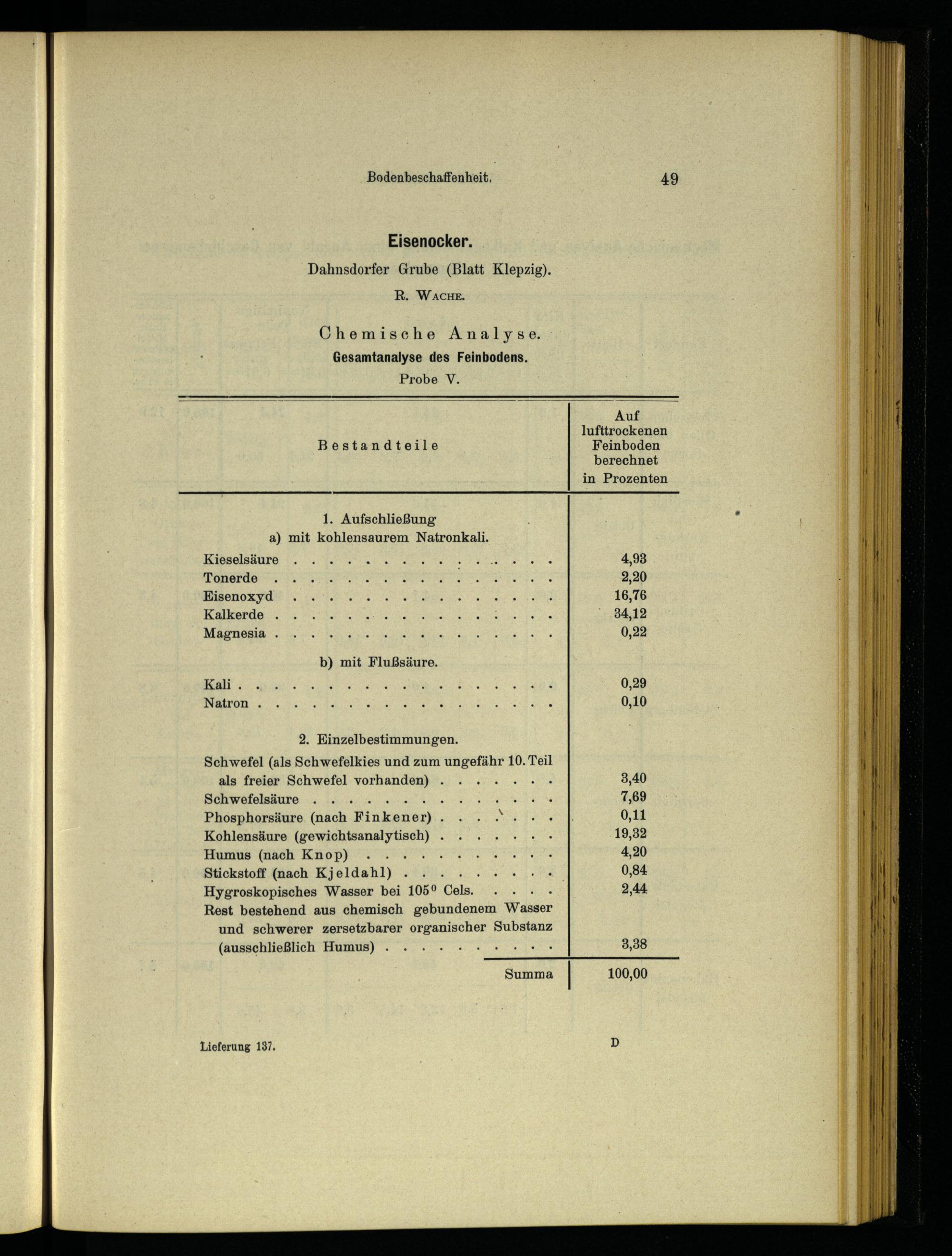 Chemische Analyse. Gesamtanalyse des Feinbodens. Probe. V.