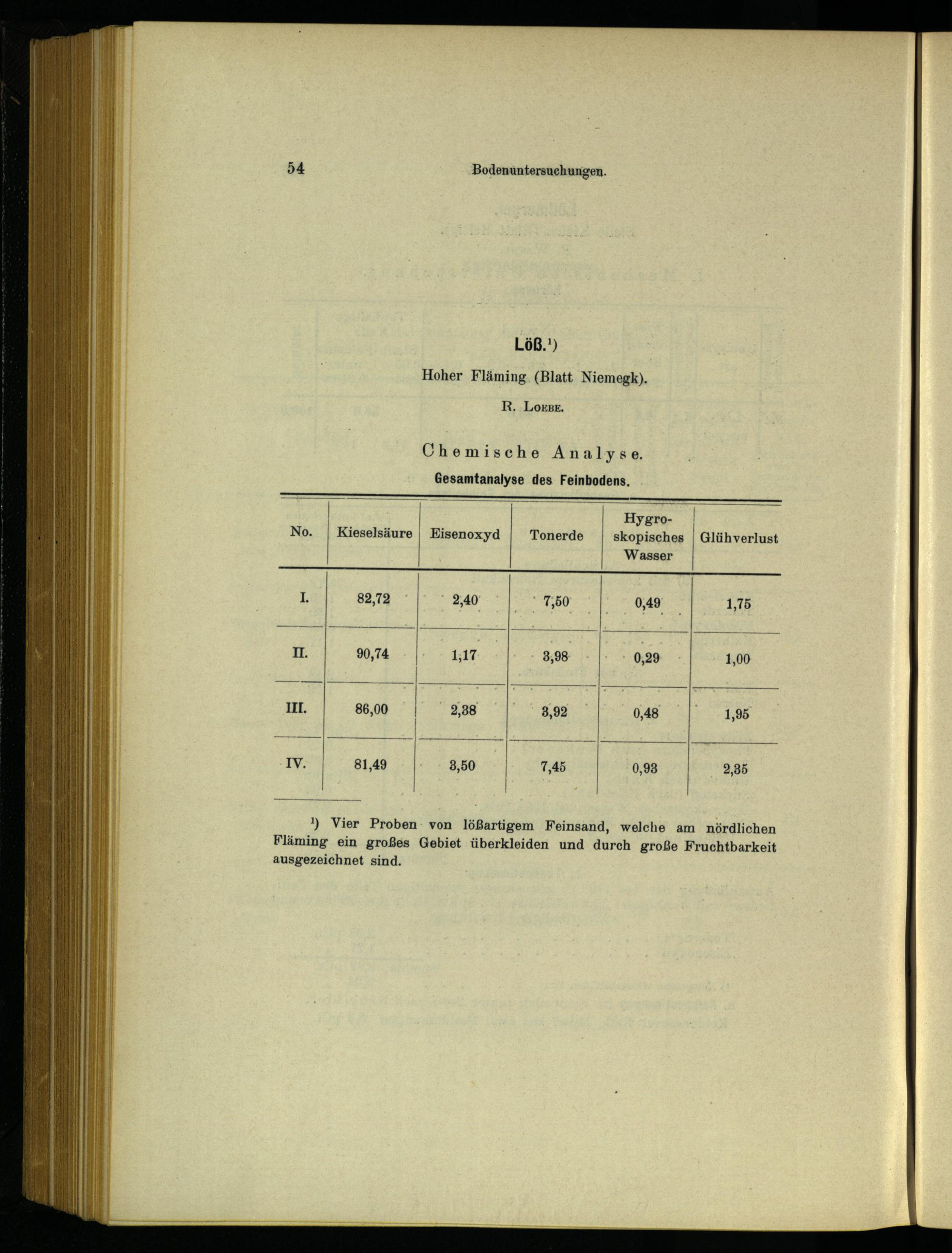 ') Vier Proben. von lößartigem Feinsand, welche am nördlichen Fläming ein großes Gebiet überkleiden und durch große Fruchtbarkeit ausgezeichnet sind.