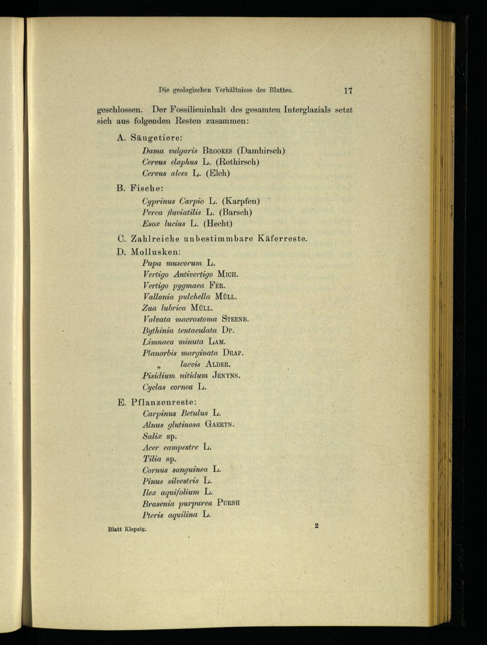 E. Pflanzenreste: Carpinus Betulus I. Alnus glutinosa GAERTN. Salix sp. Acer campestre Lı. Tilia sp. Cornus sanguinea L. Pinus silvestris Lı. Tlex aquifolium I. Brasenia purpurea Purst Pteris aquilina L.