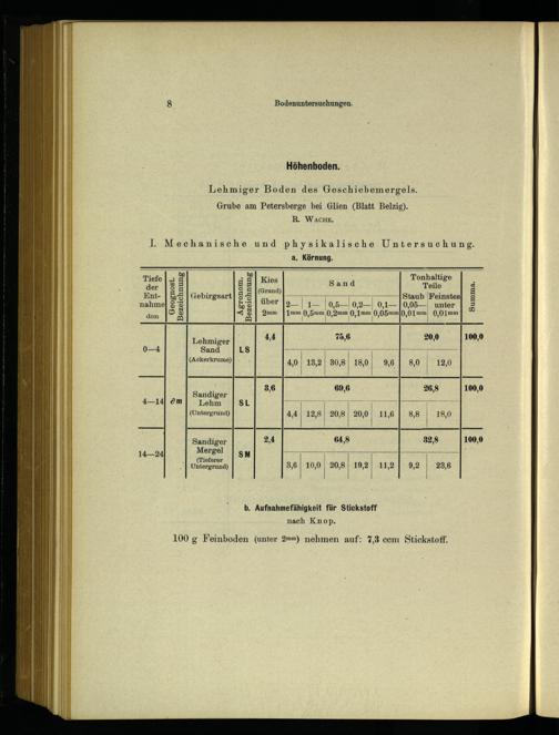I. Mechanische und physikalische Untersuchung. a. Körnung.