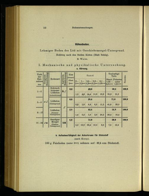 b. Aufnahmefähigkeit der Ackerkrume für Stickstoff (nach Knop).