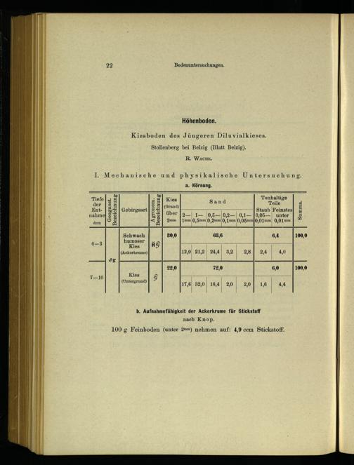 b. Aufnahmefähigkeit der Ackerkrume für Stickstoff nach Knop.