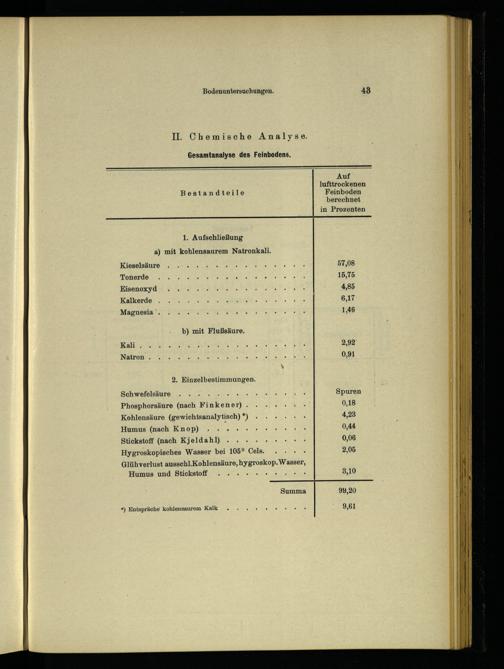 Phosphorsäure(nach Finkener). Kohlensäure(gewichtsanalytisch)*) Humus(nach Knop)