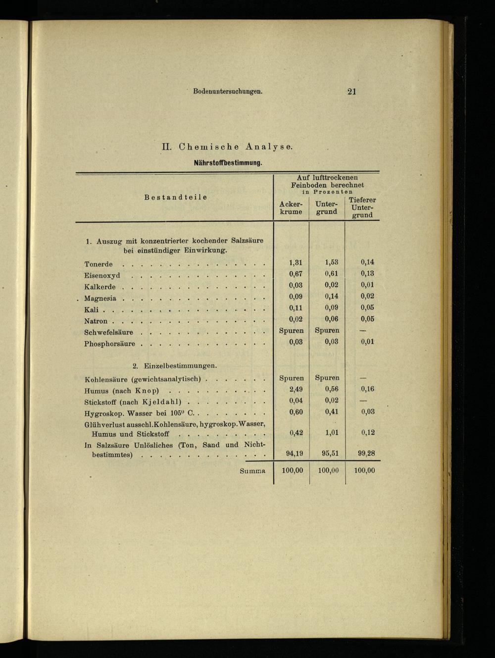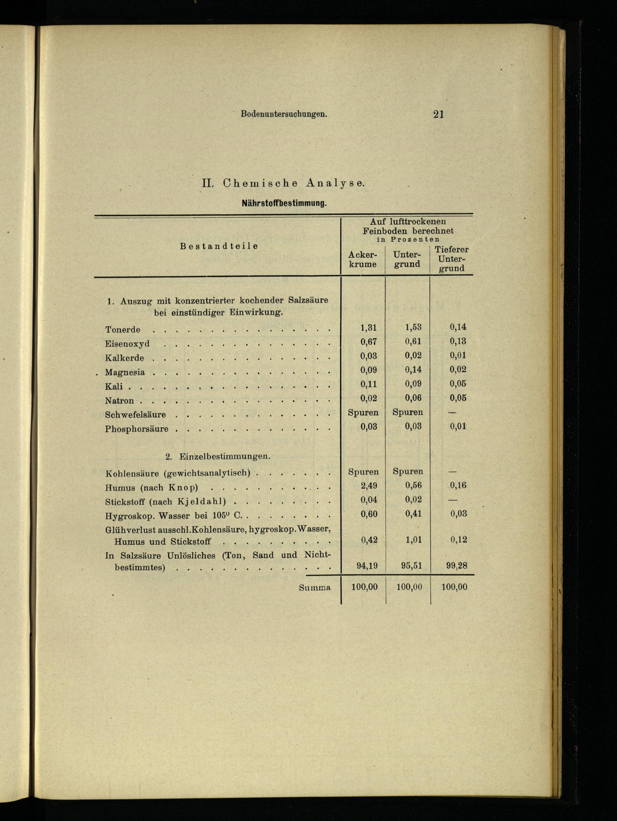 1. Auszug mit konzentrierter kochender Salzsäure bei einstündiger Einwirkung. Tonerde Eisenoxyd Kalkerde . Magnesia Kali. Natron. Schwefelsäure Phosphorsäure.