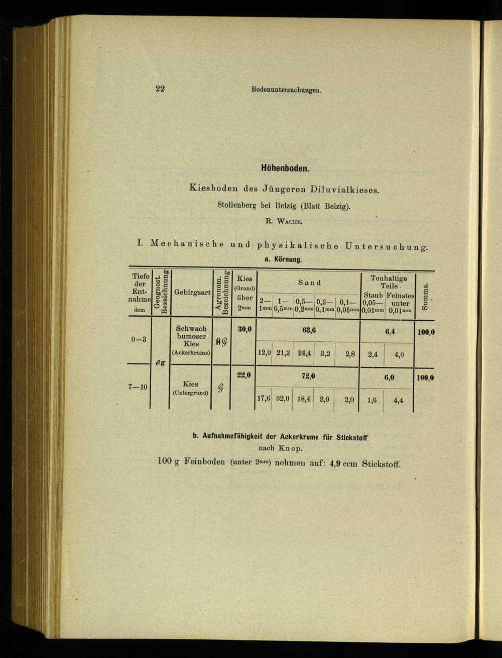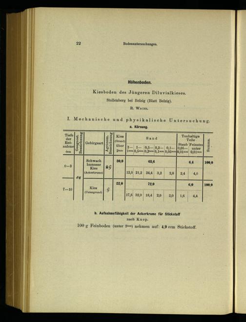 b. Aufnahmefähigkeit der Ackerkrume für Stickstoff nach Knop.