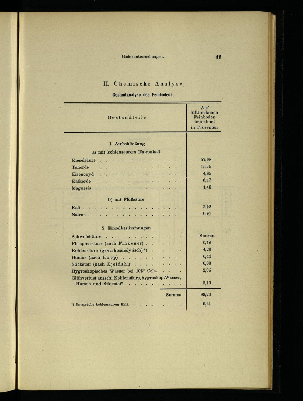 Phosphorsäure(nach Finkener). Kohlensäure(gewichtsanalytisch)*) Humus(nach Knop)