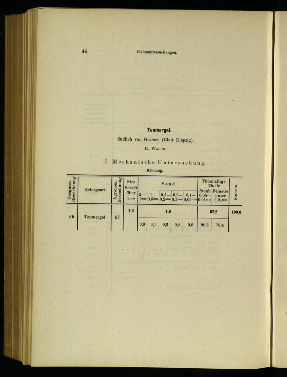 ; Thonhaltige Kies AB (Grand) Theile is ARE 7 1-7—— 1] Staub|[Feinstes über|9__.0,2—. 0,1—|0.05— unter 2mm|]mm ‚0,1mm 0,05mm(0,01mm 0,01mm
