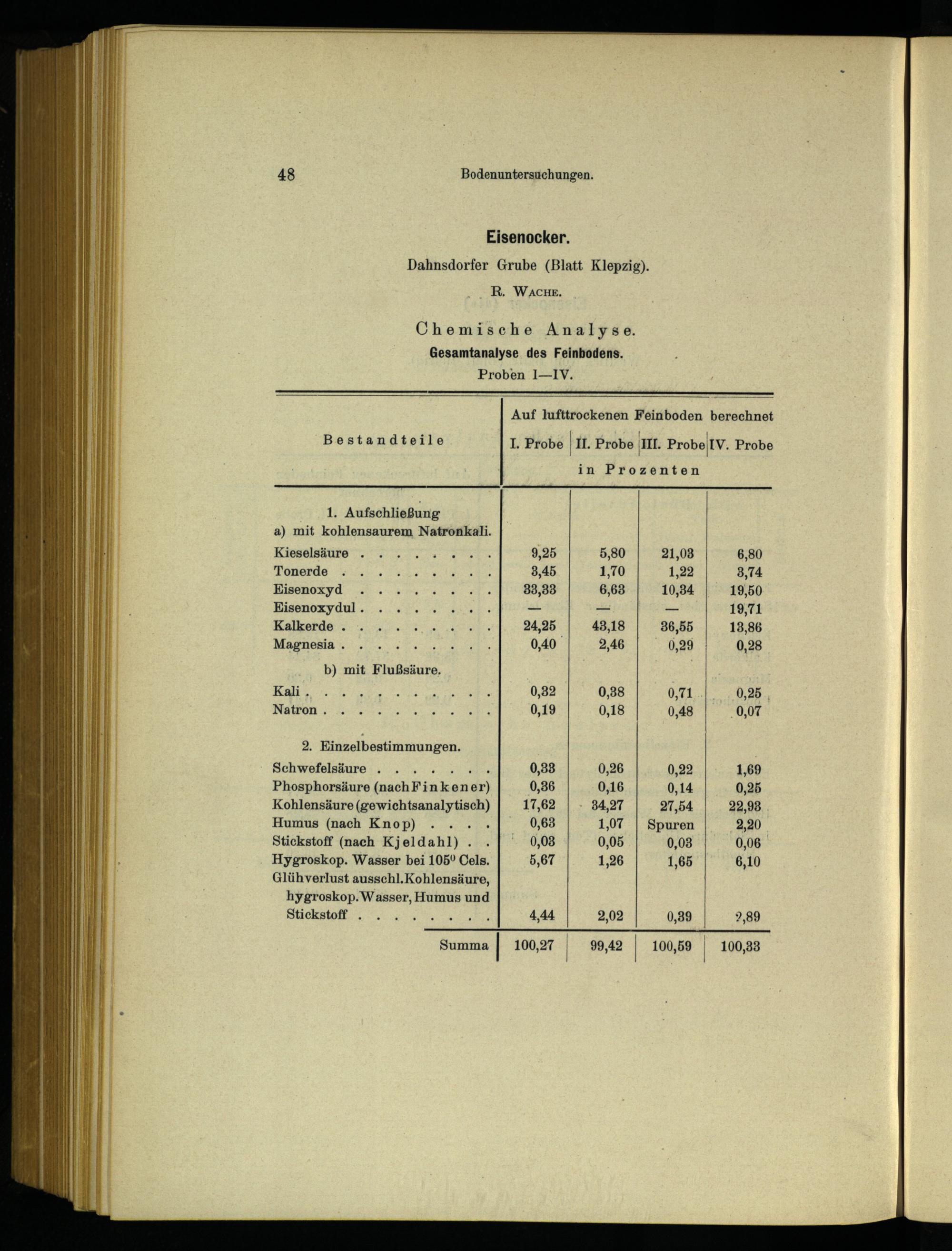 Chemische Analyse. Gesamtanalyse des Feinbodens. Proben 1—I1V.