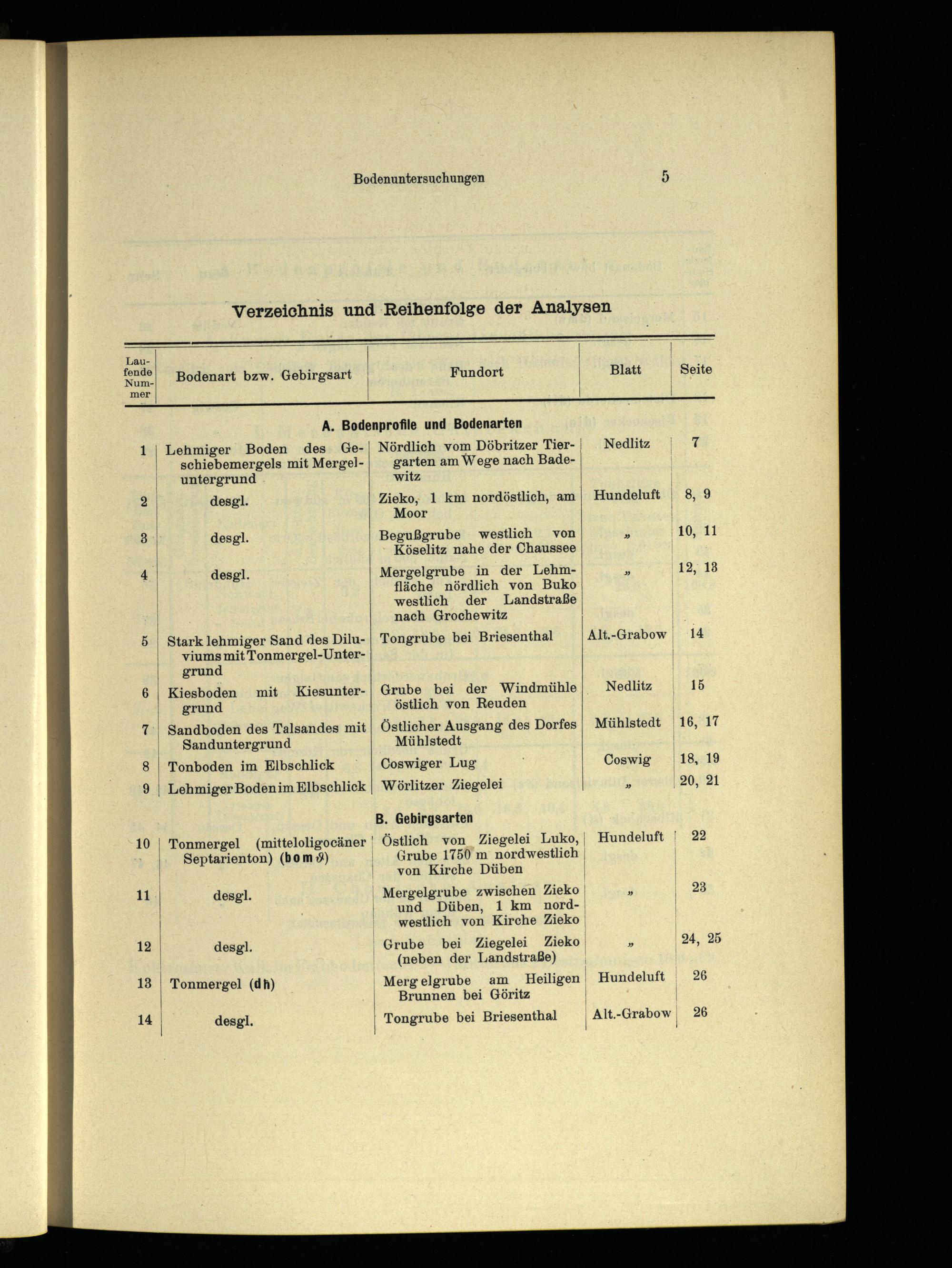 "Verzeichnis und Reihenfolge der Analysen