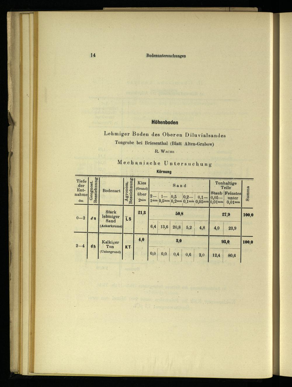 Lehmiger Boden des Oberen Diluvialsandes Tongrube bei Briesenthal(Blatt Alten-Grabow) R.-WacHE