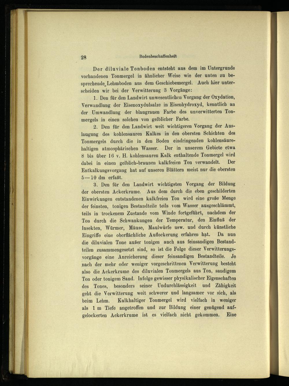 Der diluviale Tonboden entsteht aus dem im Untergrunde vorhandenen Tonmergel in ähnlicher Weise wie der unten zu besprechende, Lehmboden aus dem Geschiebemergel. Auch hier unterscheiden wir bei der Verwitterung 3 Vorgänge:;