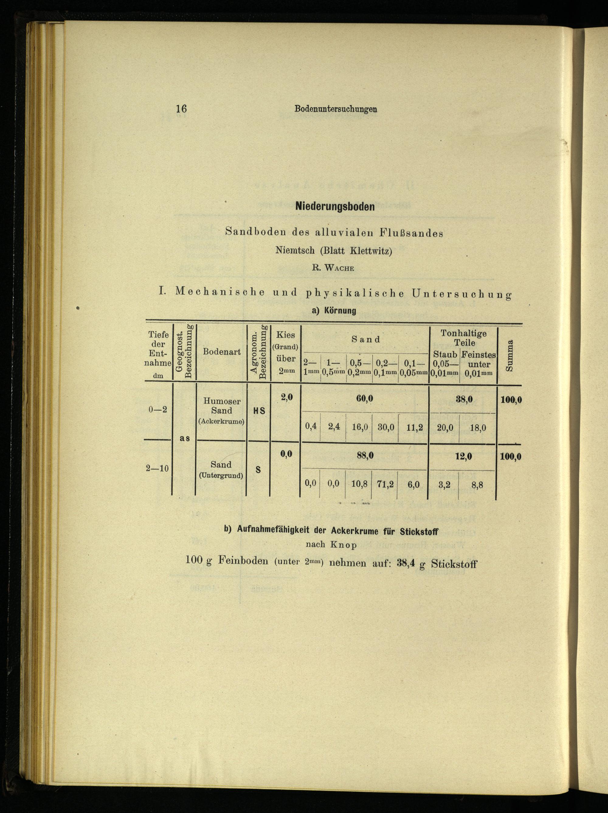 b) Aufnahmefähigkeit der Ackerkrume für Stickstoff nach Knop
