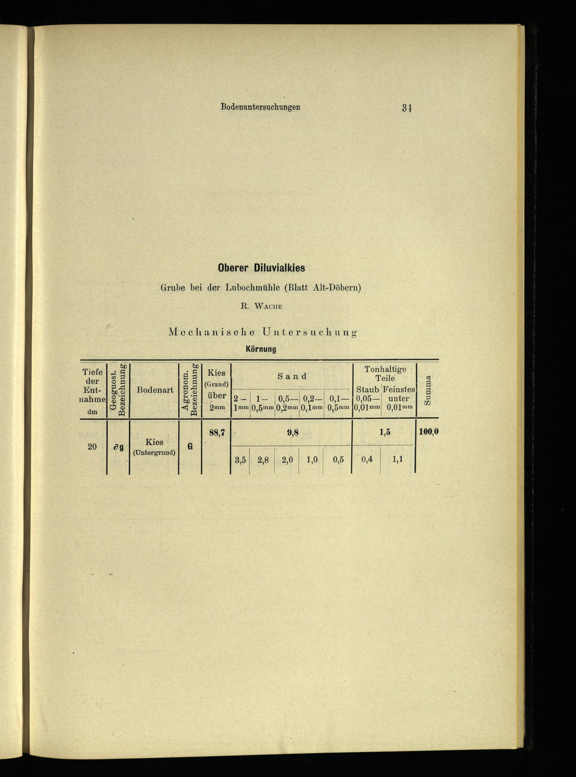Oberer Diluvialkies Grube bei der Lubochmühle(Blatt Alt-Döbern) R. WACcHE