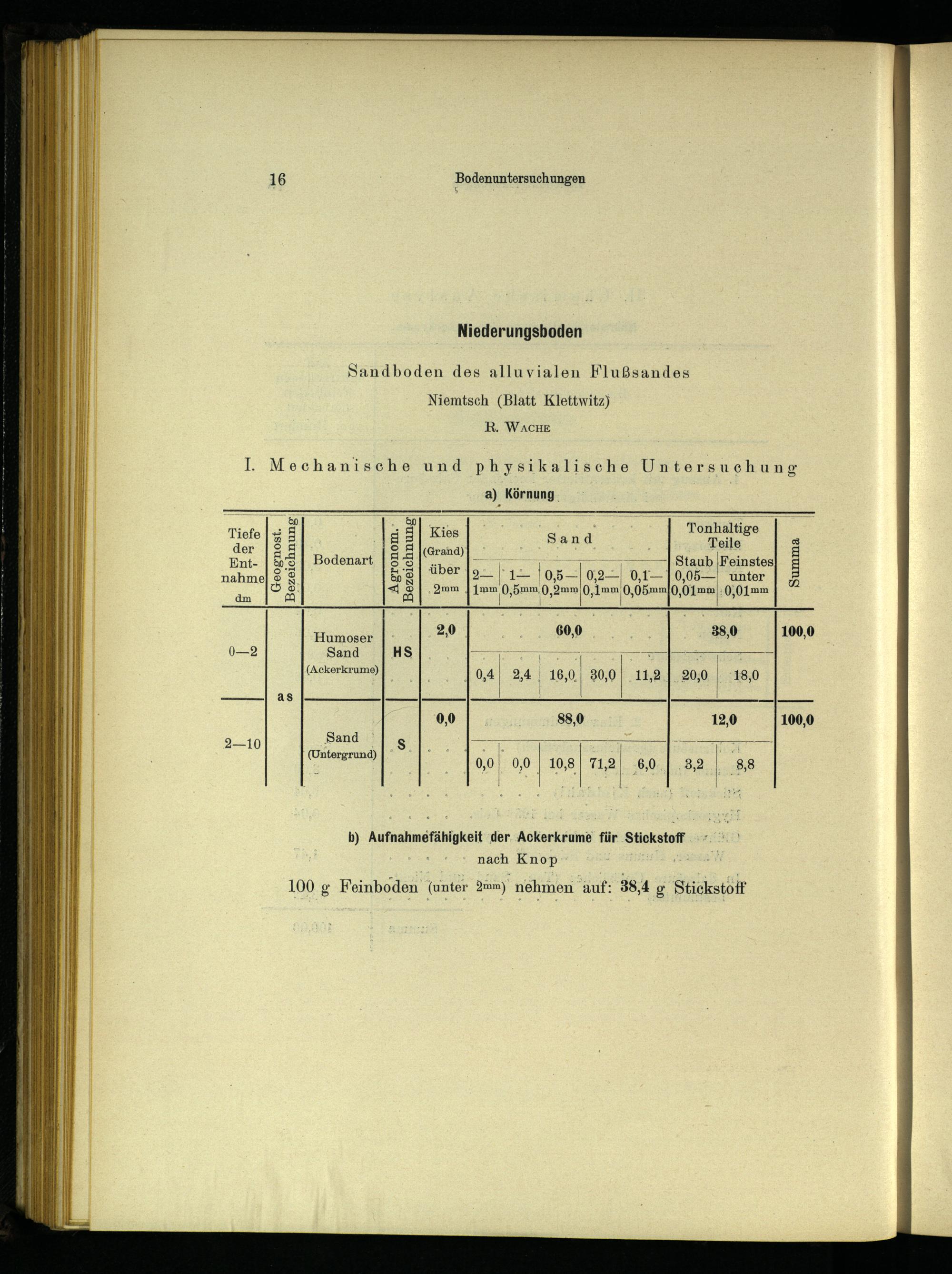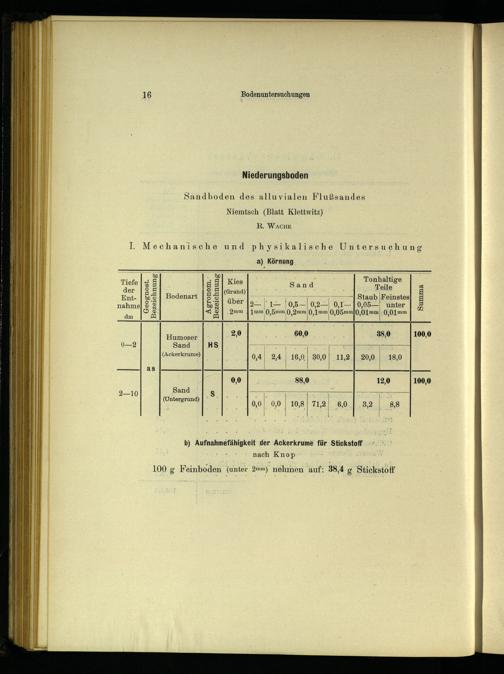 b) Aufnahmefähigkeit der. Ackerkrume für Stickstoff. nach Knop