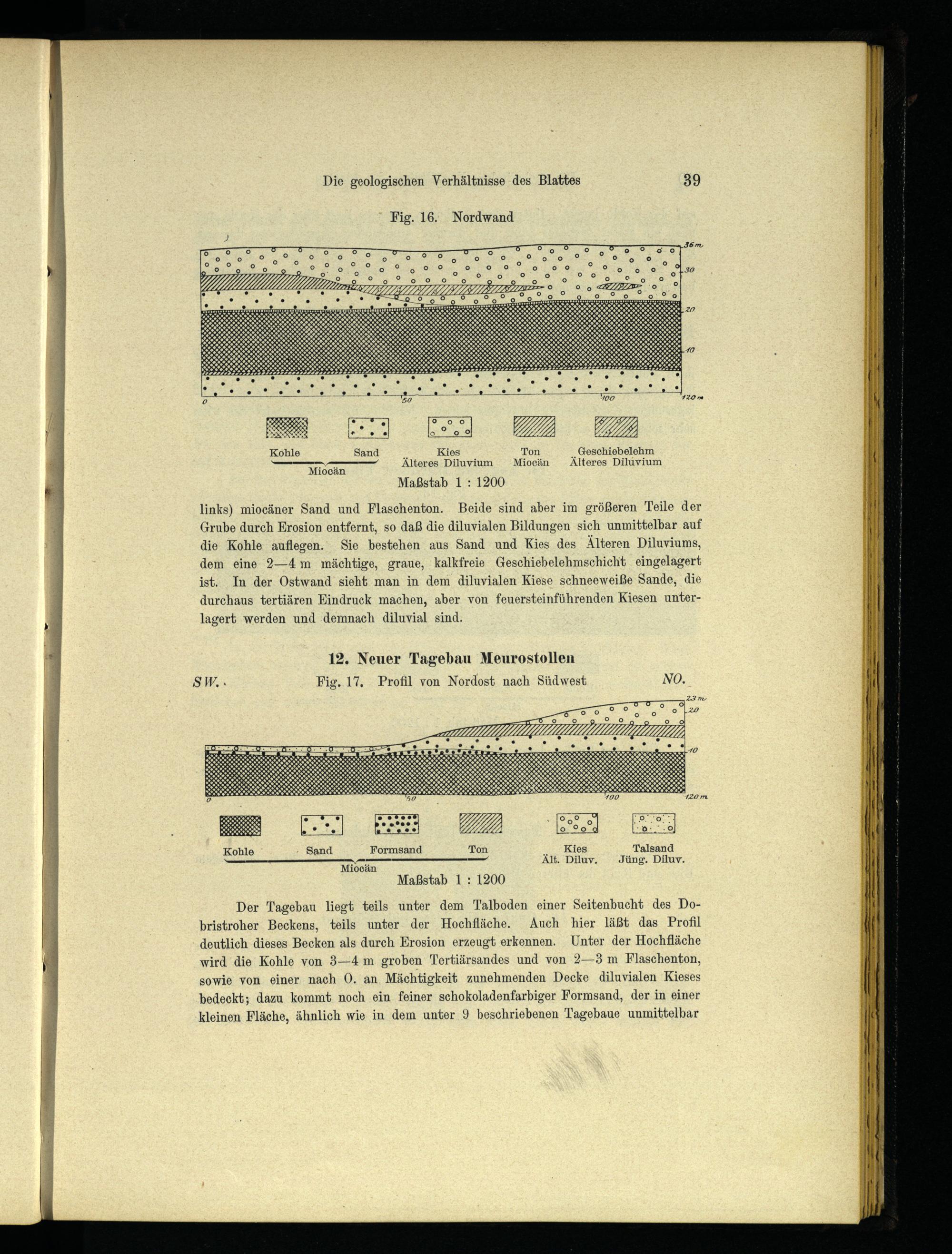 12. Neuer Tagebau Meurostollen SW... Fig. 17, Profil von Nordost nach Südwest NO.
