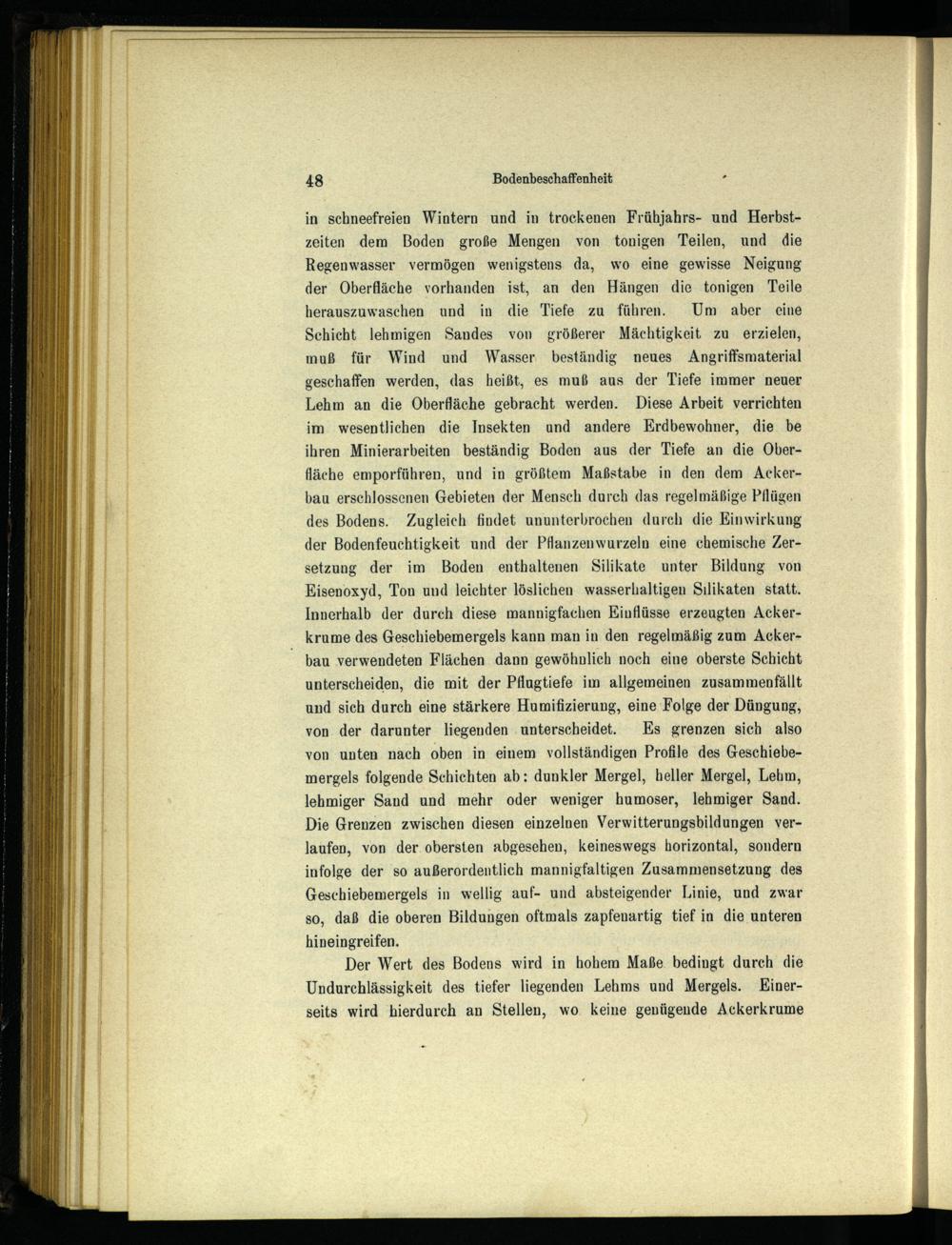 Der Wert des Bodens wird in hohem Maße. bedingt durch die Undurchlässigkeit des tiefer liegenden Lehms und Mergels. Kinerseits wird hierdurch an Stellen, wo keine genügende Ackerkrume