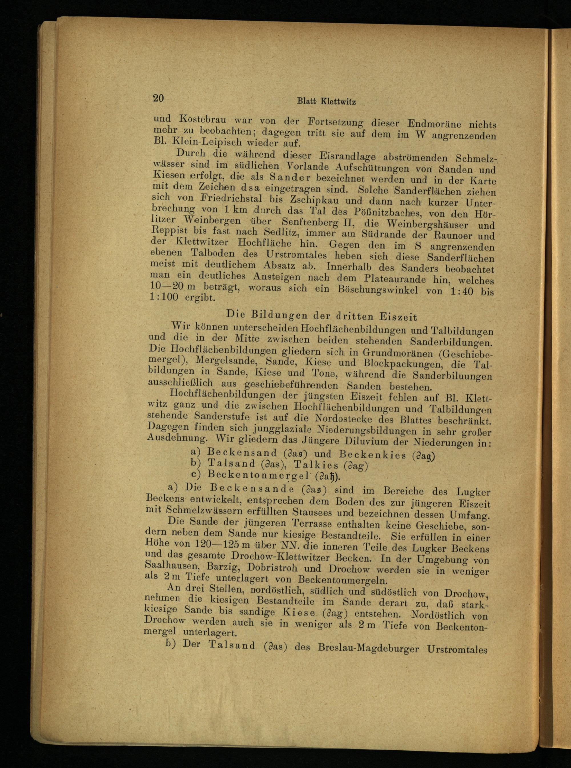 und Kostebrau war von der Fortsetzung dieser Endmoräne nichts mehr zu beobachten; dagegen tritt sie auf dem im W angrenzenden Bl. Klein-Leipisch wieder auf.