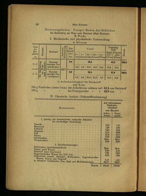Wasser, Humus und Stickstoff.. A RN 2,13 1,51 In Salzsäure Unlöslisches(Ton, Sand und Nichtbestimmtes).. 82,07 88,37