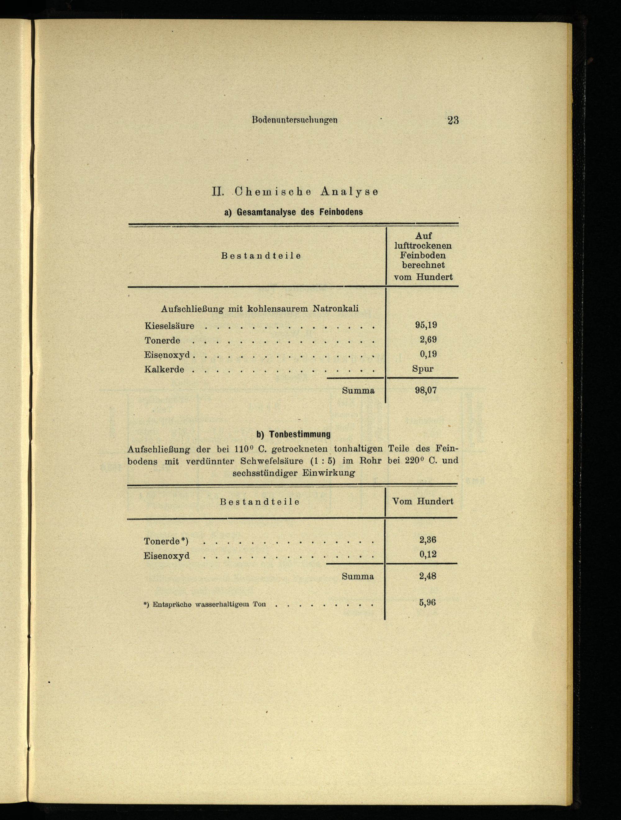 *) Entspräche wasserhaltigem Ton..... 4% 0.4 5,96