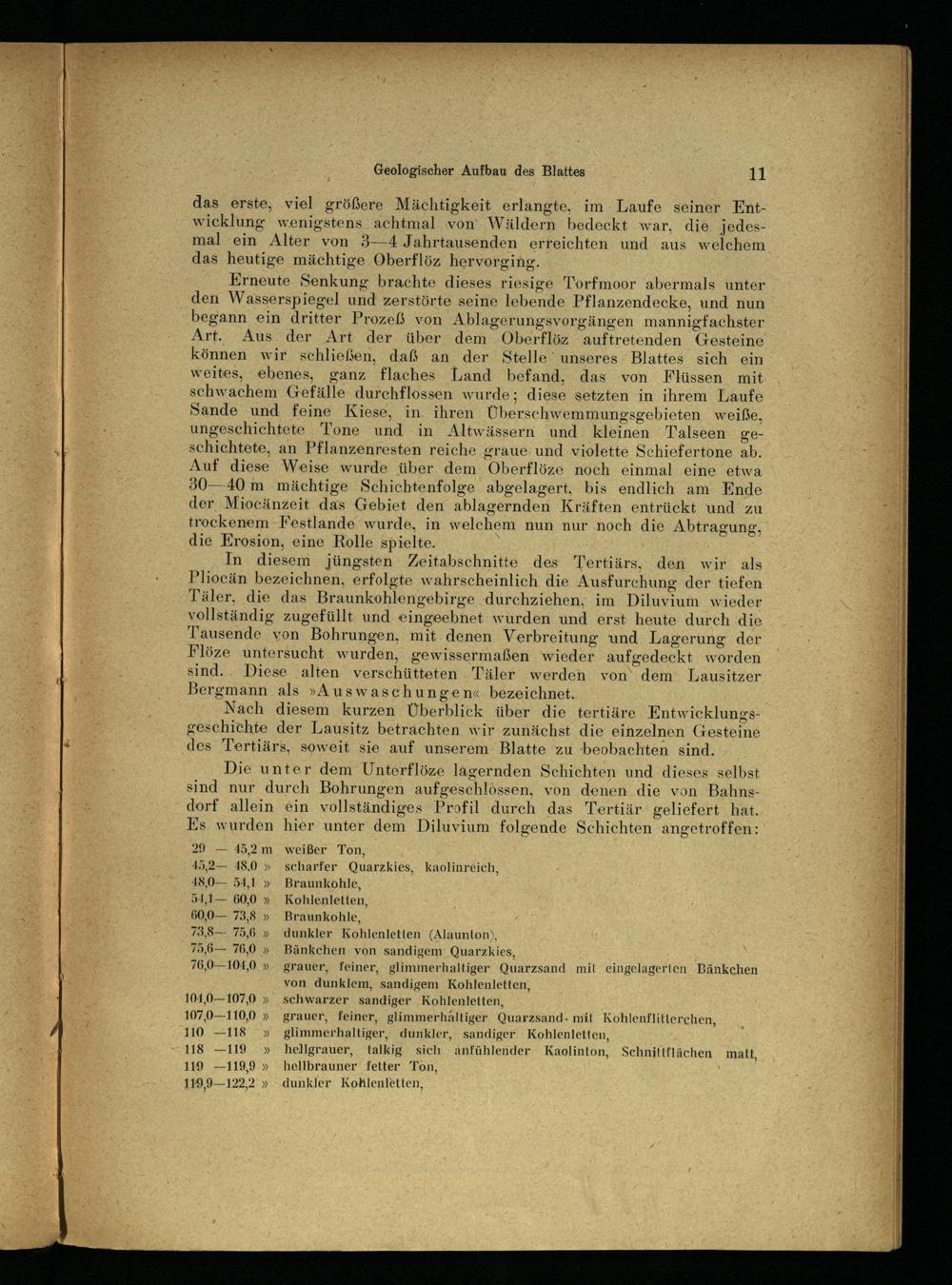 Die unter dem Unterflöze lagernden Schichten und dieses selbst sind nur durch Bohrungen aufgeschlossen, von denen die von Bahns dorf allein ein vollständige es Profil durch das Tertiär geliefert hat Es wurden hier unter dem Diluvium folgende Schichten angetroffen: