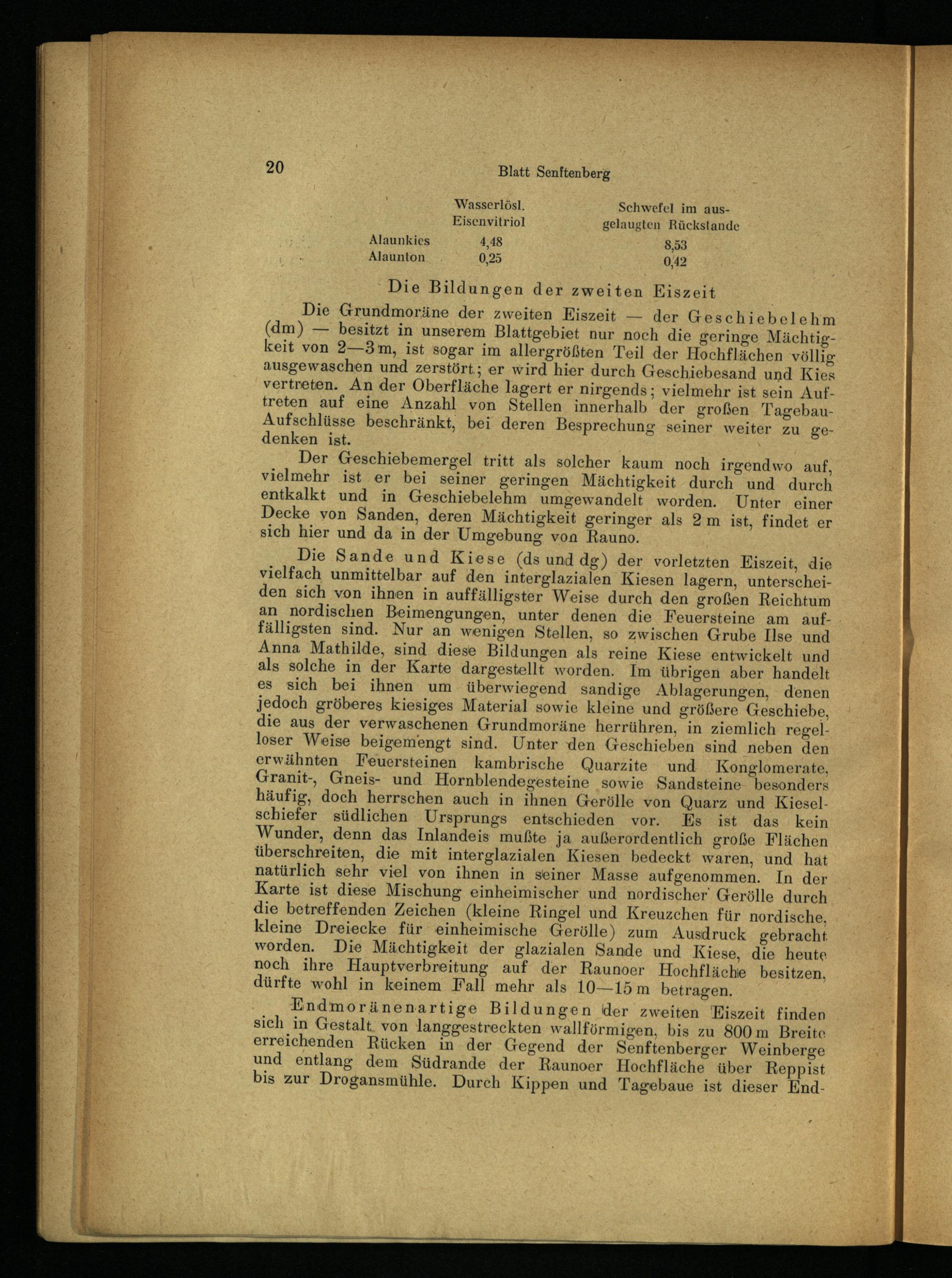 Eisenvitriol gelaugten Rückstande Alaunkies 4,48 8,53 Alaunton 0,25 0,42