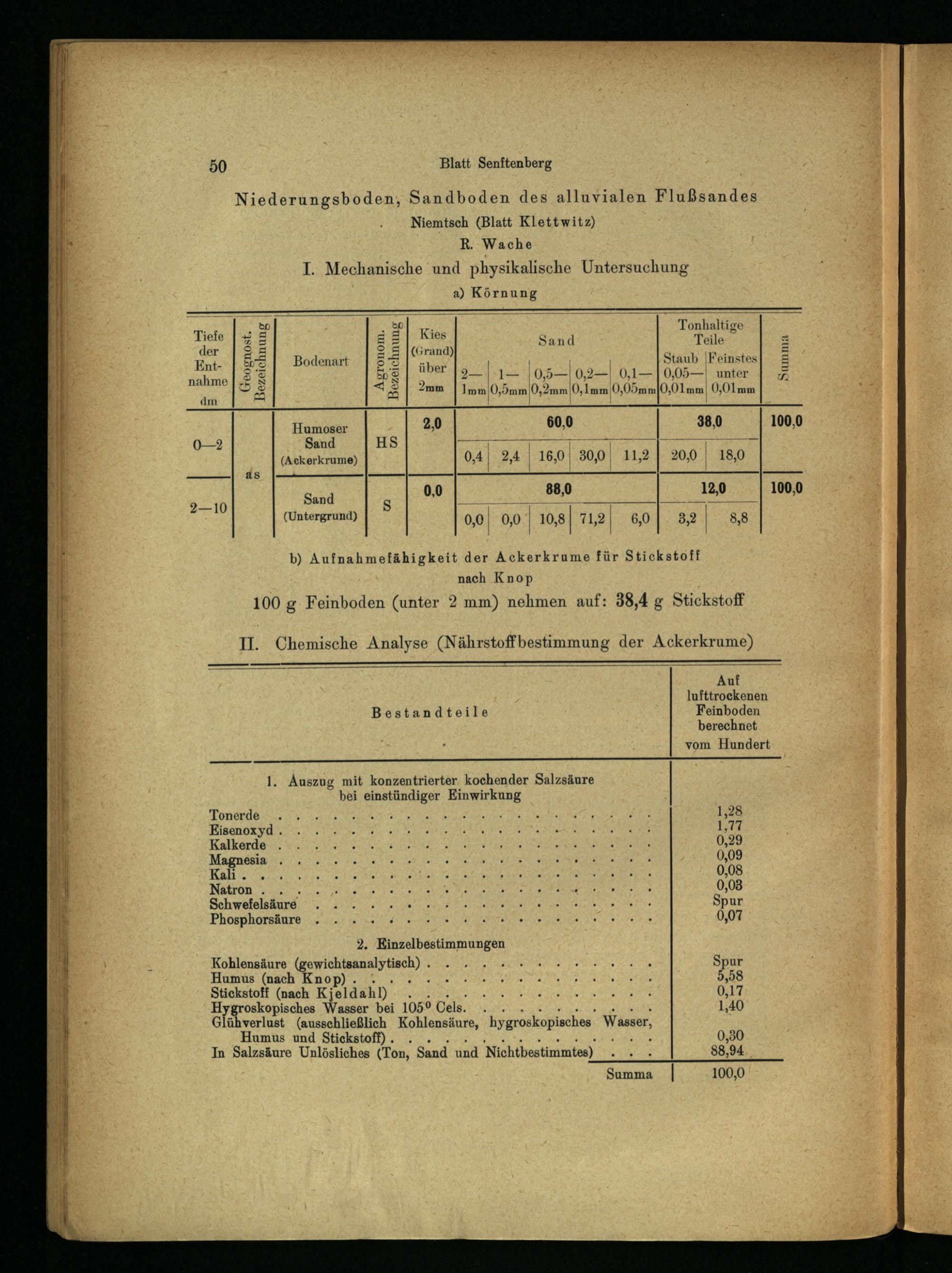 Humus und Stickstoff)... 0,30 In Salzsäure Unlösliches(Ton, Sand und‘Nichtbestimmtes) en 88,94.