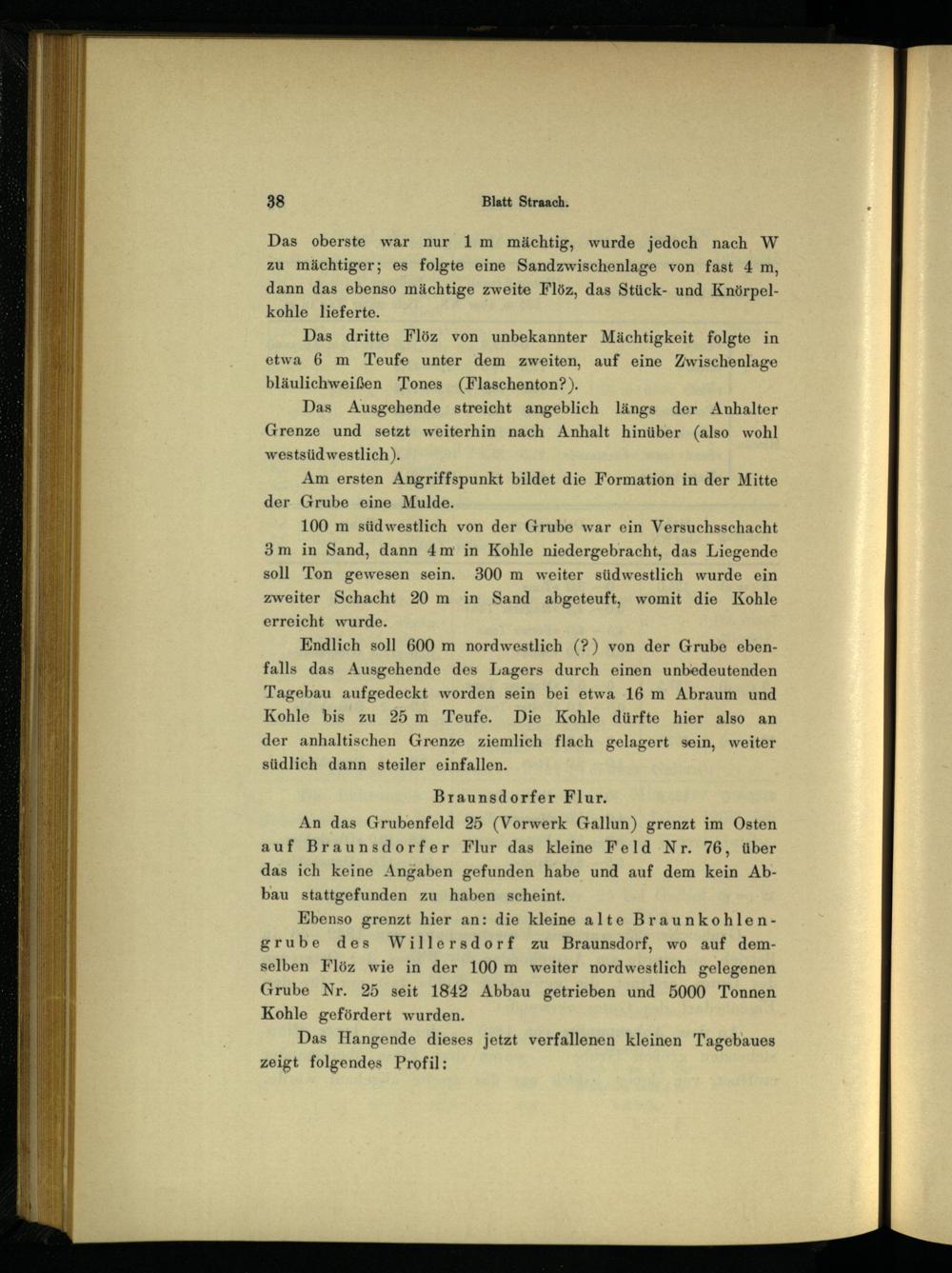 Tagebau aufgedeckt worden sein bei etwa 16 m Abraum und Kohle bis zu 25m Teufe. Die Kohle dürfte hier also an der anhaltischen Grenze ziemlich flach gelagert sein, weiter südlich dann steiler einfallen.