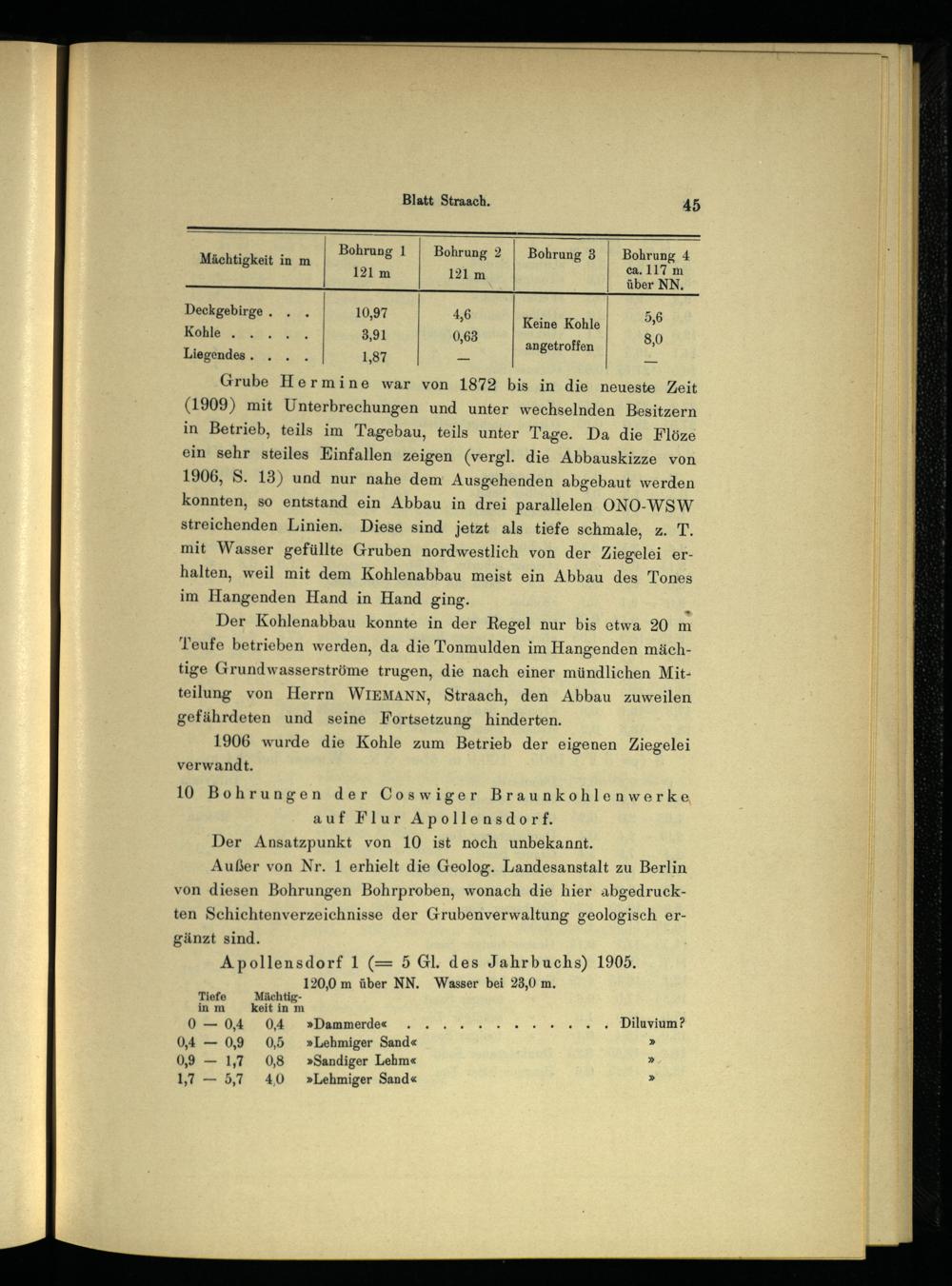 Apollensdorf 1(= 5 Gl. des Jahrbuchs) 1905. 120,0 m über NN. Wasser bei 23,0 m.