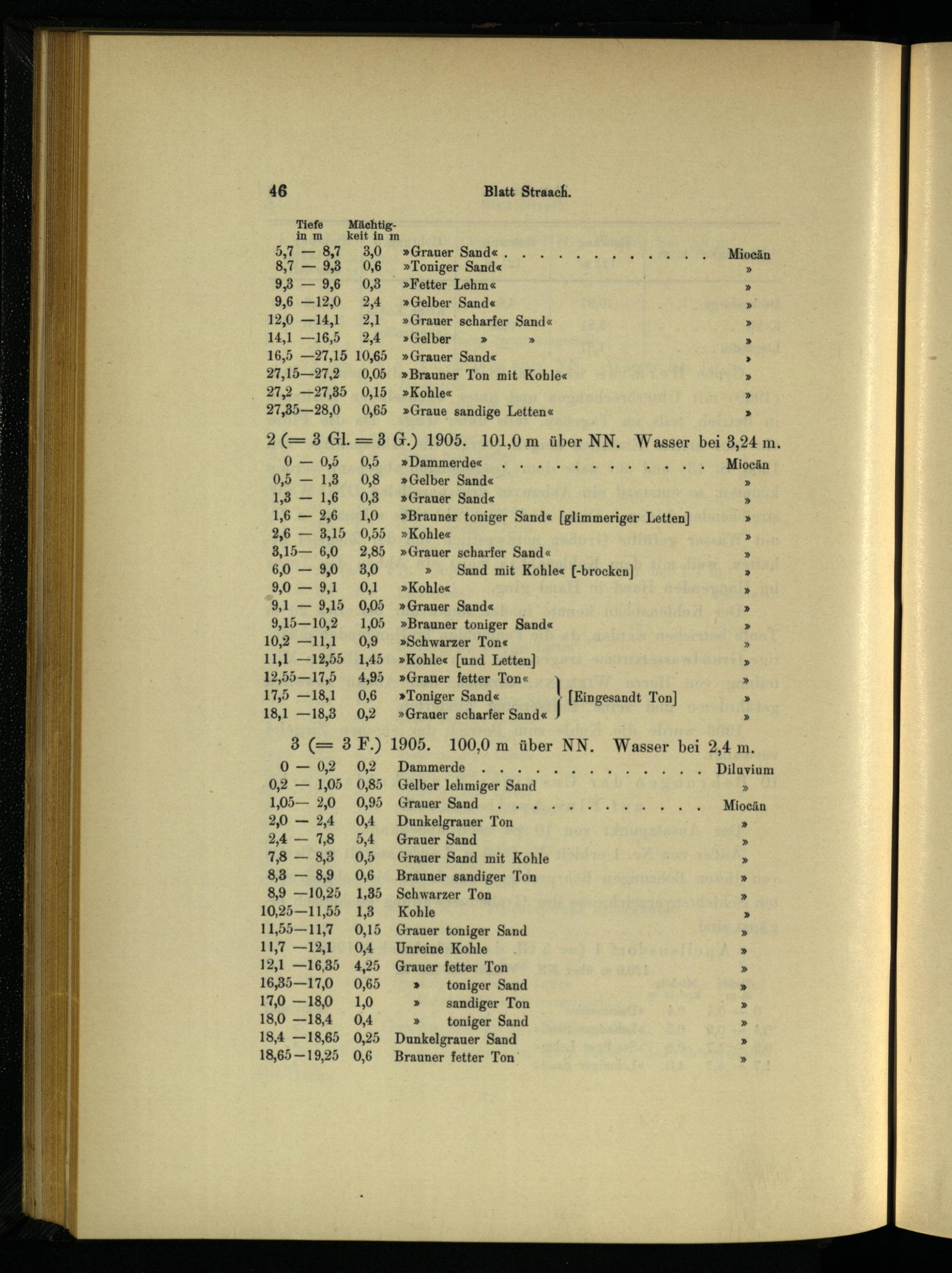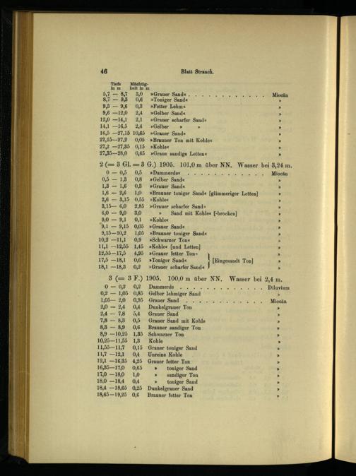 2(= 3 Gl.=3 G.) 1905. 101,0 m über NN. Wasser bei 3,24 m. 0-—05,. 0,5;»Dammerdes:= 2... 4 40 ho 01 Miocän