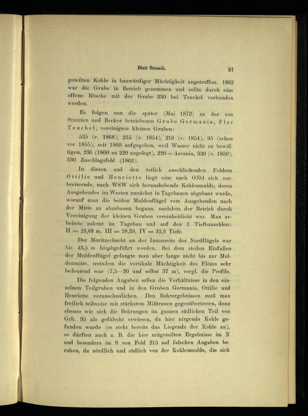 Die folgenden Angaben sollen die Verhältnisse in den einzelnen Teilgruben und in den Gruben Germania , Ottilie und Henriette veranschaulichen. Den Bohrergebnissen muß man freilich teilweise mit stärkstem Mißtrauen gegenübertreten, denn zohrungen im ganzen südlichen"Feil von