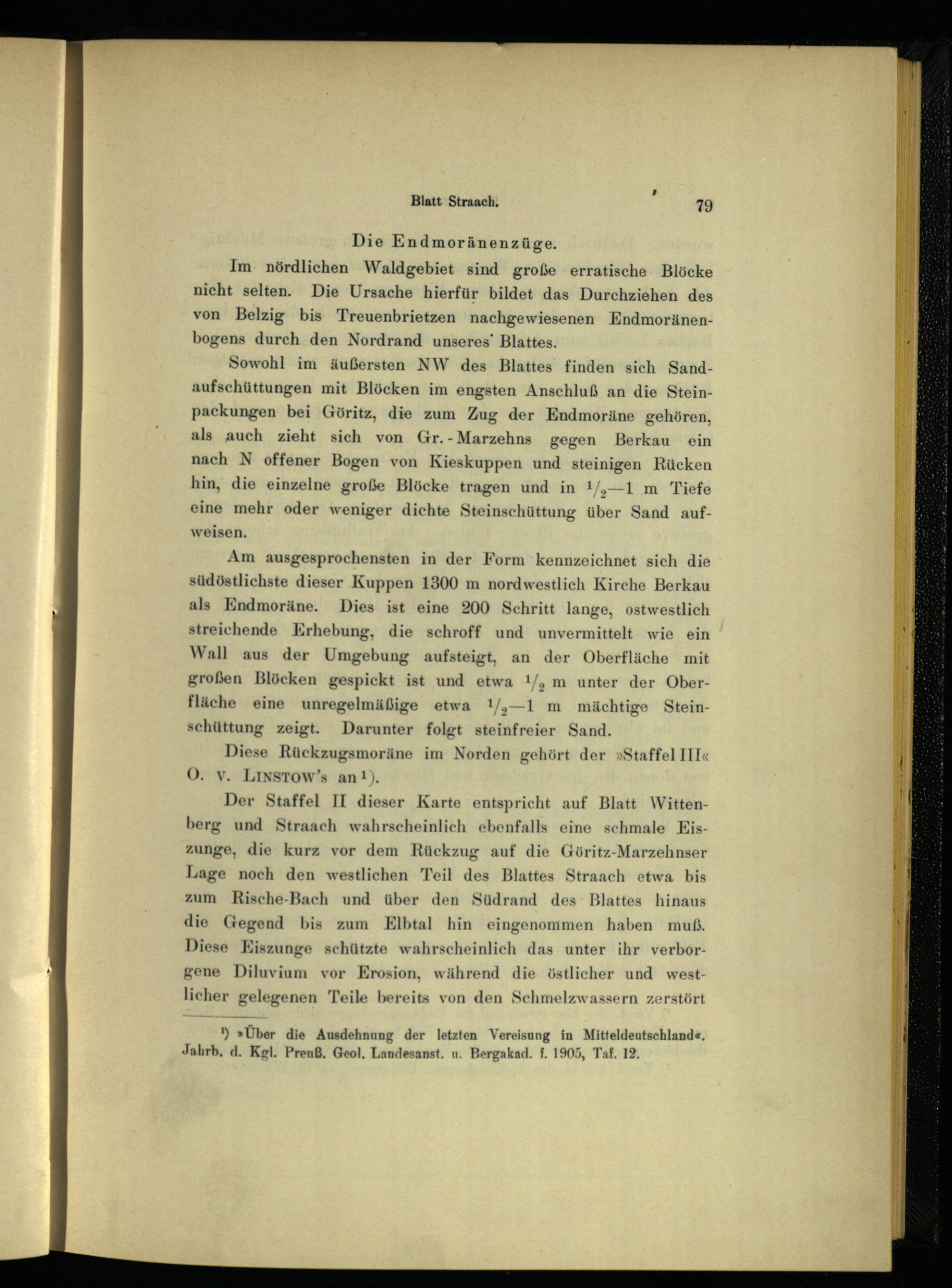 ')»Über die Ausdehnung der letzten Vereisung in Mitteldeutschland «, Jahrb. d. Kgl. Preuß, Geol, Landesanst. u. Bergakad. f. 1905, Taf, 12,