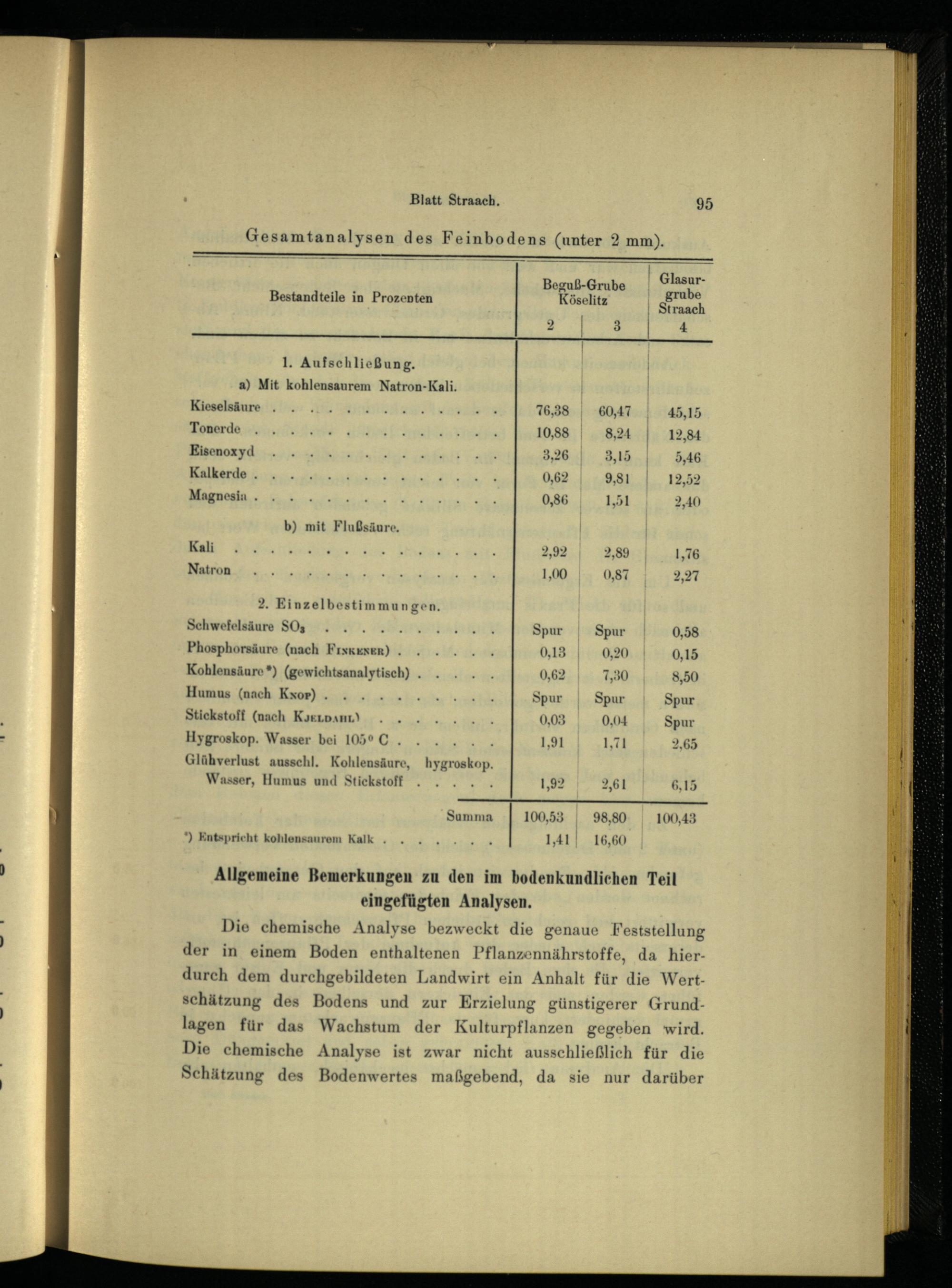 Glühverlust ausschl. Kohlensäure, hygroskop. Wasser, Humus und Stickstoff..... 1,92 2,61 6,15 —— P—————>———>—>——[—[——— Summa 100,53 98,80 100,43