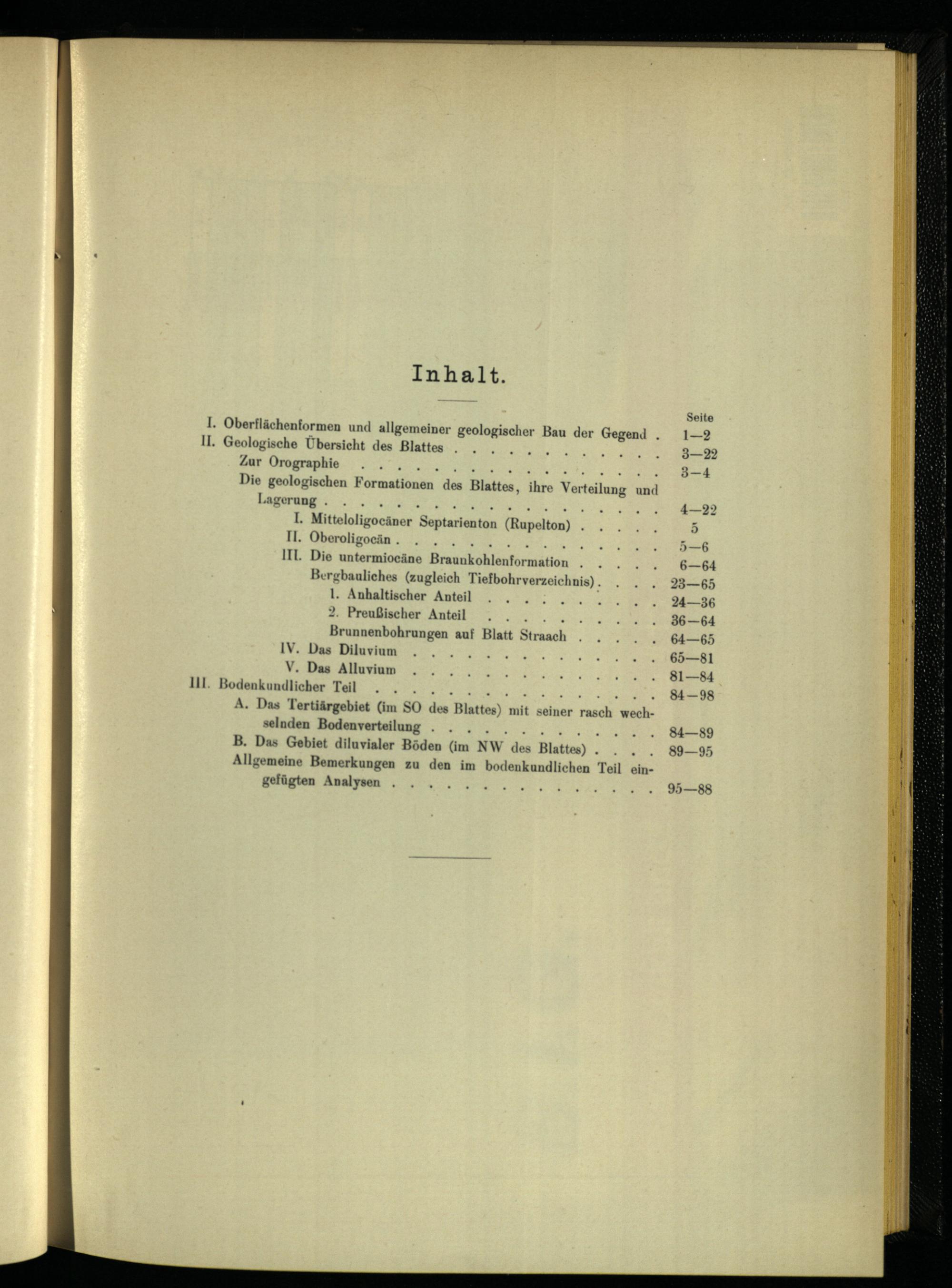 I. Mitteloligocäner Septarienton(Rupelton). II. Oberoligocän. el 1IIl. Die untermiocäne Braunkohlenformation Bergbauliches(zugleich Tiefbohrverzeichnis). 1. Anhaltischer Anteil 2. Preußischer Anteil... Brunnenbohrungen auf Blatt Straach IV. Das Diluvium V. Das Alluvium 111. Bodenkundlicher Teil en A. Das Tertiärgebiet(im SO des Blattes) selnden Bodenverteilung. 000.200... 4 4704 B, Das Gebiet diluvialer Böden(im NW des Blattes). Allgemeine Bemerkungen zu den im bodenkundliche gefügten Analysen