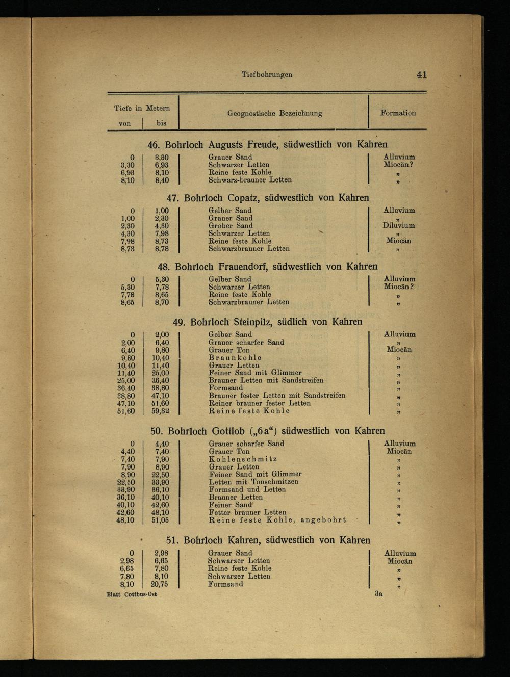 1,00 Gelber Sand Alluvium 2,30 Grauer Sand” 4,30 Grober Sand; Diluvium 7,98 Schwarzer Letten» 8,78“Reine feste Kohle Miocän 8,78 Schwarzbrauner Letten ws