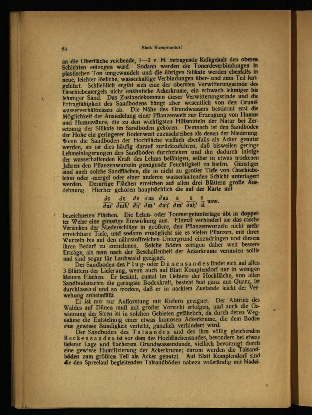 Der Sandboden des Talsandes und des ihm völlig gleichenden Beckensandes ist vor dem des Hochflächensandes, besonders bei etwas tieferer Lage und flacherem Grundwasserstande, vielfach bevorzugt durch eine gewisse Humifizierung der Ackerkrume; darum werden die Talsandböden zum größten Teil als Acker genutzt. Auf Blatt Komptendorf sind die den Spreelauf begleitenden Talsandböden nahezu vollständig mit Nadel