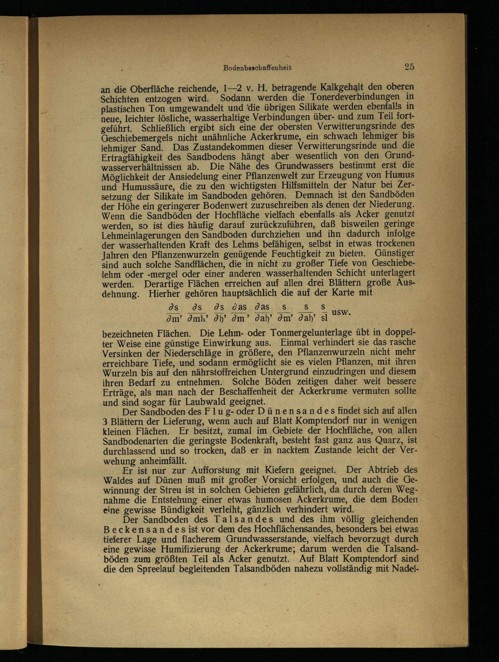 Der Sandboden des Talsandes und des ihm völlig gleichenden. Beckensandes ist vor dem des Hochflächensandes, besonders bei etwas tieferer Lage und flacherem Grundwasserstande, vielfach bevorzugt durch eine gewisse Humifizierung der Ackerkrume; darum werden die Talsandböden zum größten Teil als Acker genutzt. Auf Blatt Komptendorf sind die den Spreelauf begleitenden Talsandböden nahezu vollständig mit Nadel