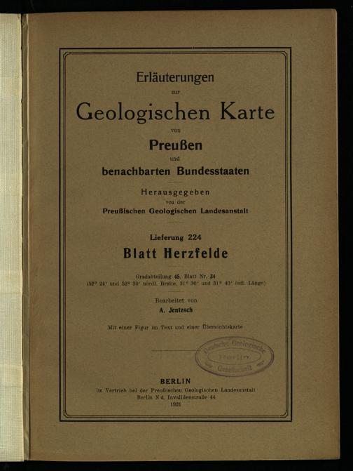 Herausgegeben von der Preußischen Geologischen Landesanstalt