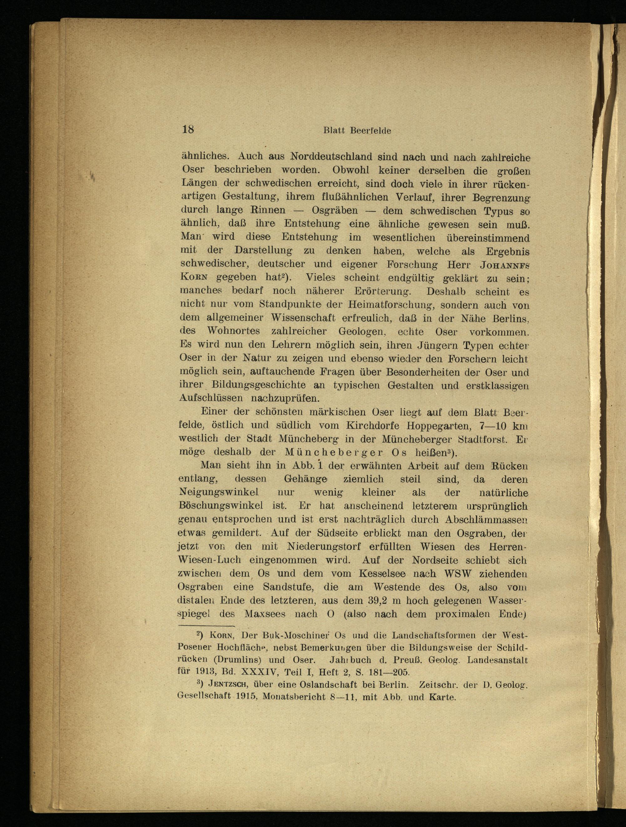 3) JENTzsCH, über eine Oslandschaft bei Berlin . Zeitschr. der D. Geolog, Gesellschaft 1915, Monatsbericht 8—11, mit Abb. und Karte.