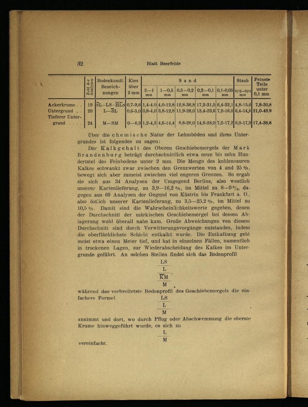 Über die chemische Natur der Lehmböden und ihres Untergrundes ist folgendes zu sagen: S