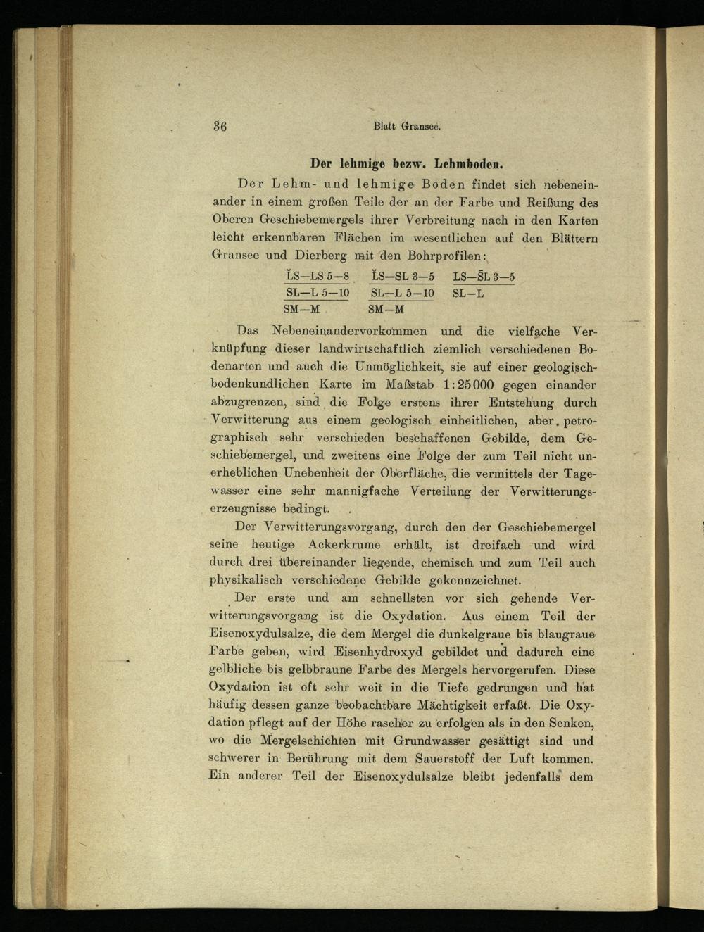 Der Lehm- und lehmige Boden findet sich nebeneinander in einem großen Teile der an der Farbe und Reißung des Oberen Geschiebemergels ihrer Verbreitung nach ın den Karten leicht erkennbaren Flächen im wesentlichen auf den Blättern Gransee und Dierberg mit den Bohrprofilen: