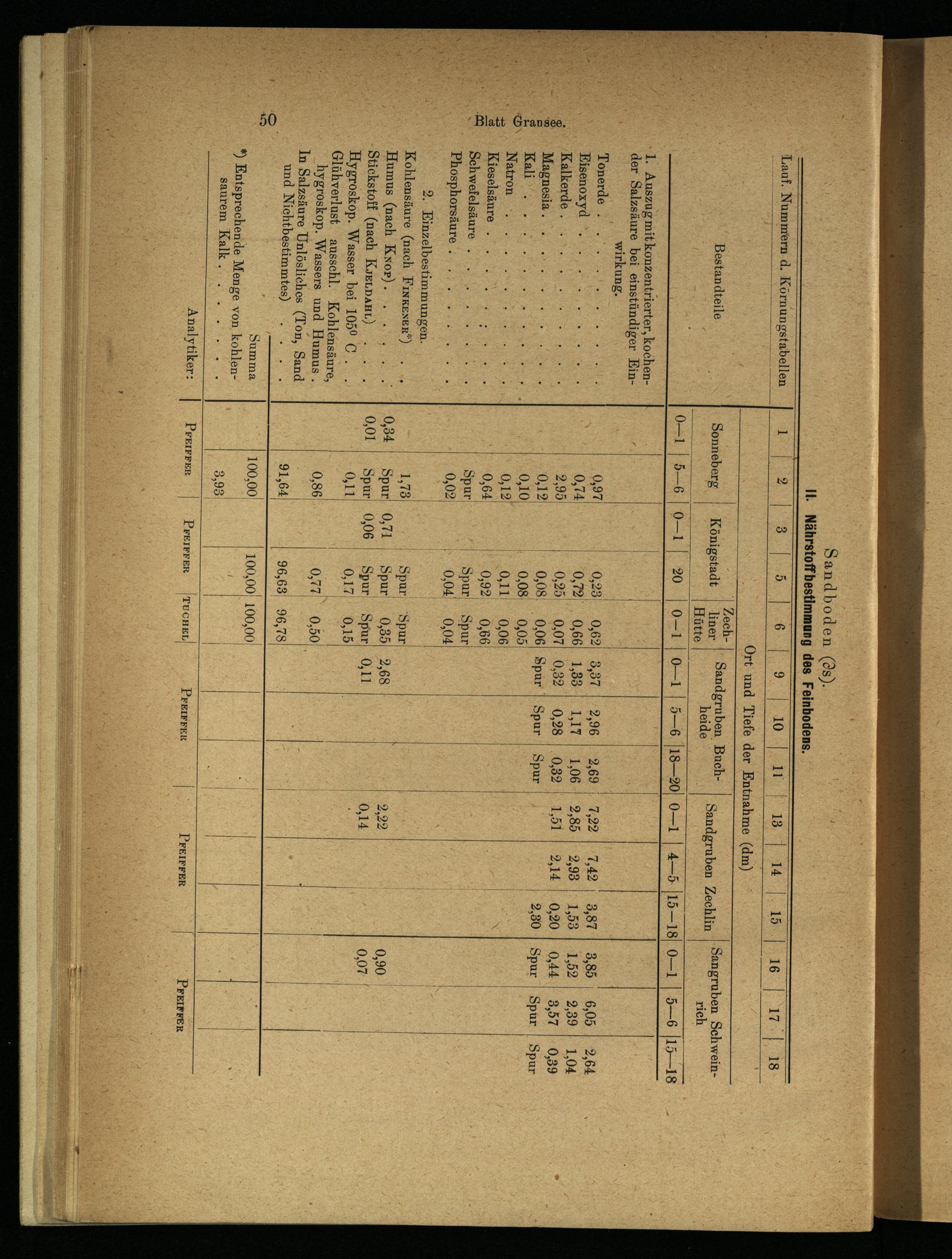 _hygroskop. Wassers und Humus.., 0,77 In Salzsäure Unlösliches(Ton, Sand|; und Nichtbestimmtes)..., 96,63 96,78