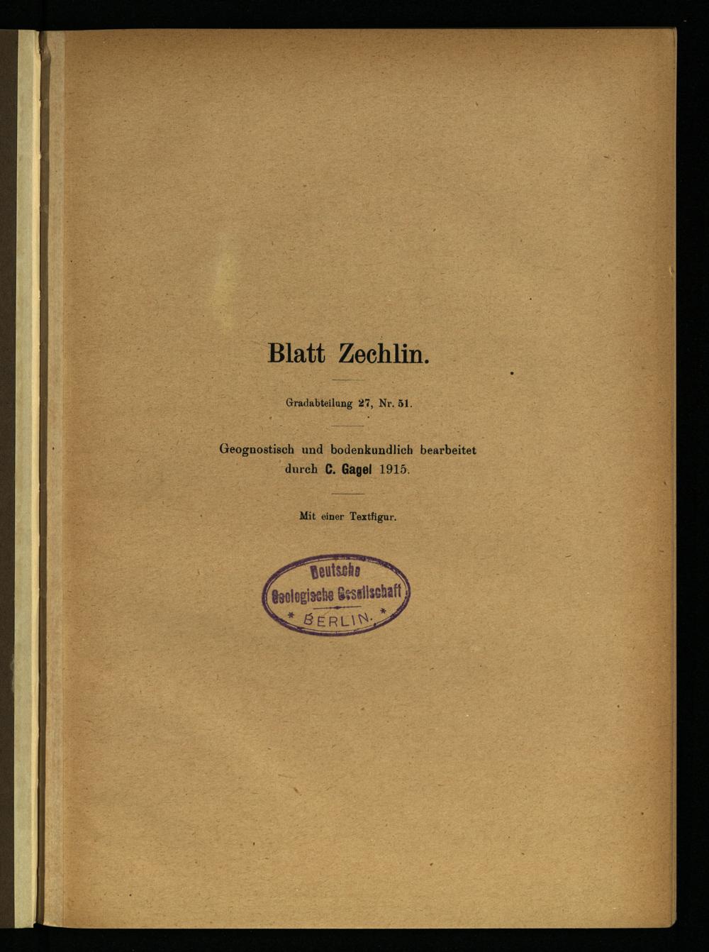 Blatt Zechlin . Gradabteilung 27, Nr. 51. Geognostisch und bodenkundlich bearbeitet durch C. Gagel 1915 Mit einer Textfigur.