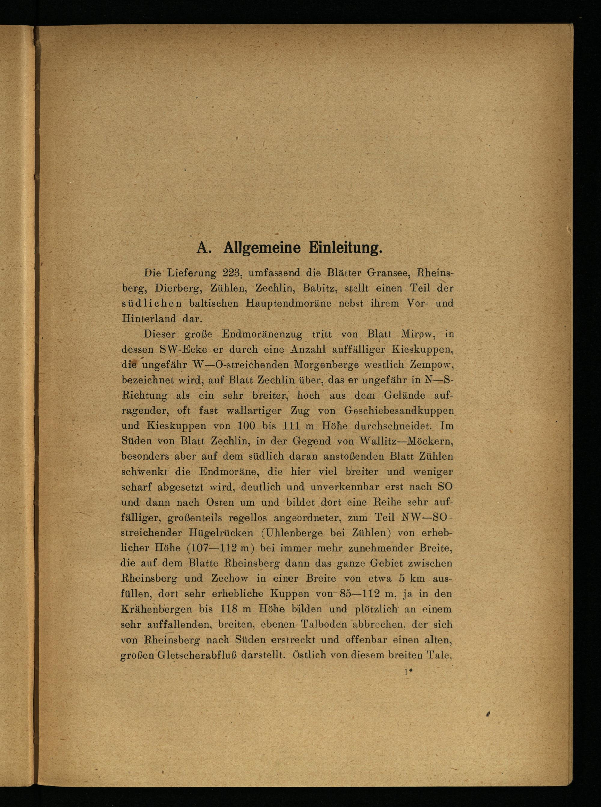 Die Lieferung 223, umfassend die Blätter Gransee , Rheins berg , Dierberg, Zühlen, Zechlin , Babitz, stellt einen Teil der südlichen baltischen Hauptendmoräne nebst ihrem Vor- und Hinterland dar.