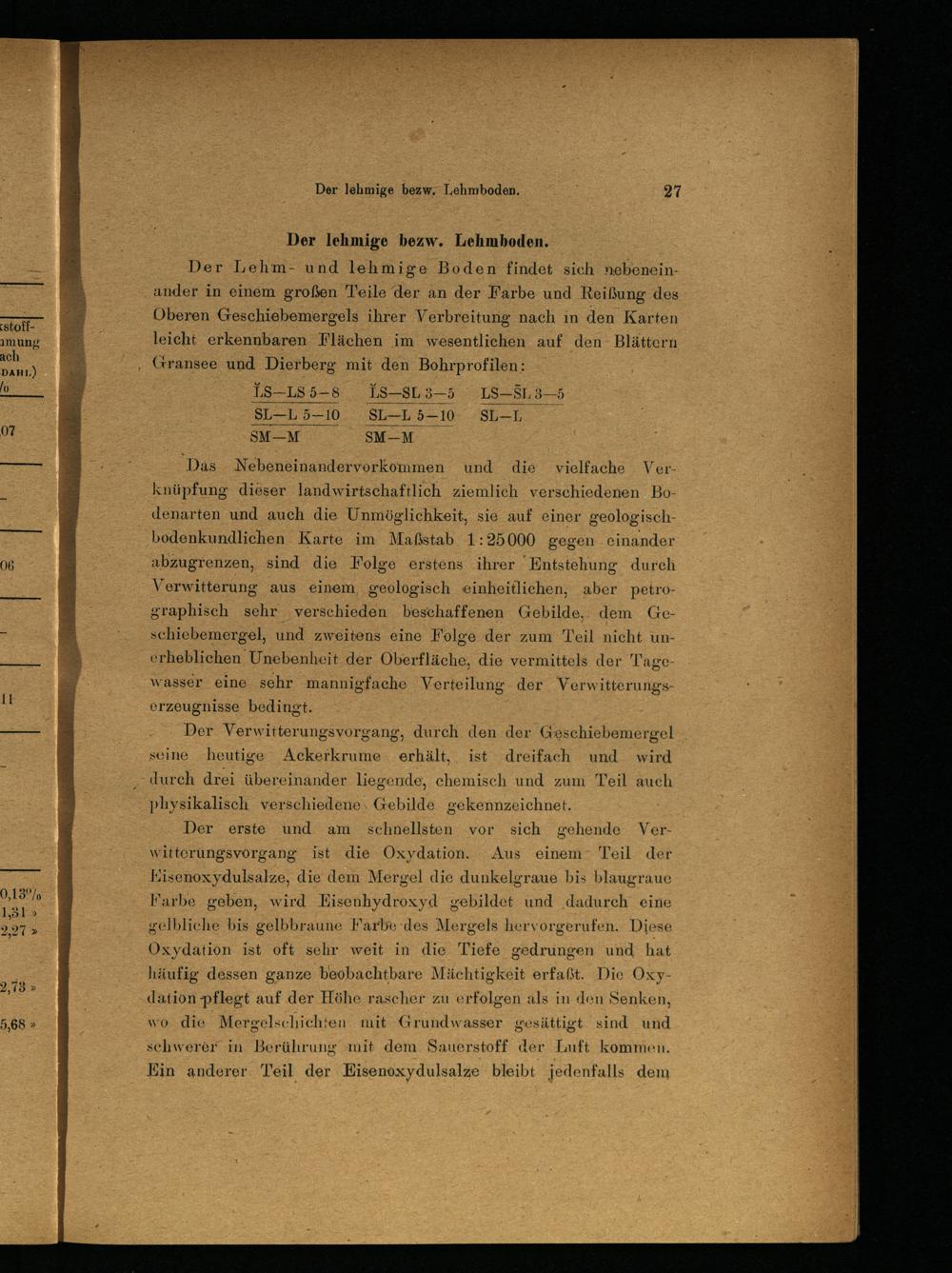 Der Lehm- und lehmige Boden findet sich nebeneinander in einem großen Teile der an der Farbe und Reibung des Oberen Geschiebemergels ihrer Verbreitung nach in den Karten leicht erkennbaren Flächen im wesentlichen auf den Blättern Gransee und Dierberg mit den Bohrprofilen: