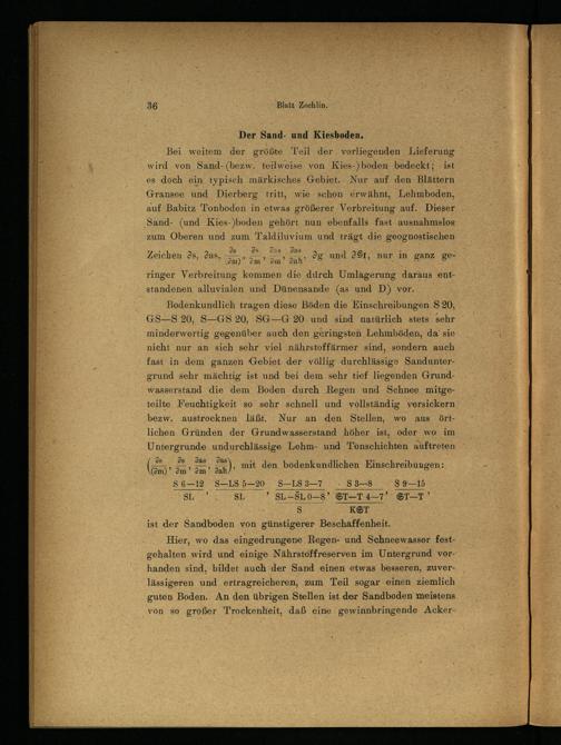 Bei weitem der größte Teil der vorliegenden Lieferung wird von Sand- (bezw. teilweise von Kies-)boden bedeckt; ist es doch ein typisch märkisches Gebiet. Nur auf den Blättern Gransee und Dierberg tritt, wie schon erwähnt, Lehmboden, auf Babitz Tonboden in etwas größerer Verbreitung auf. Dieser Sand- (und Kies-)boden gehört nun ebenfalls fast ausnahmslos 1 zum Oberen und zum Taldiluvium und trägt die geognostischen